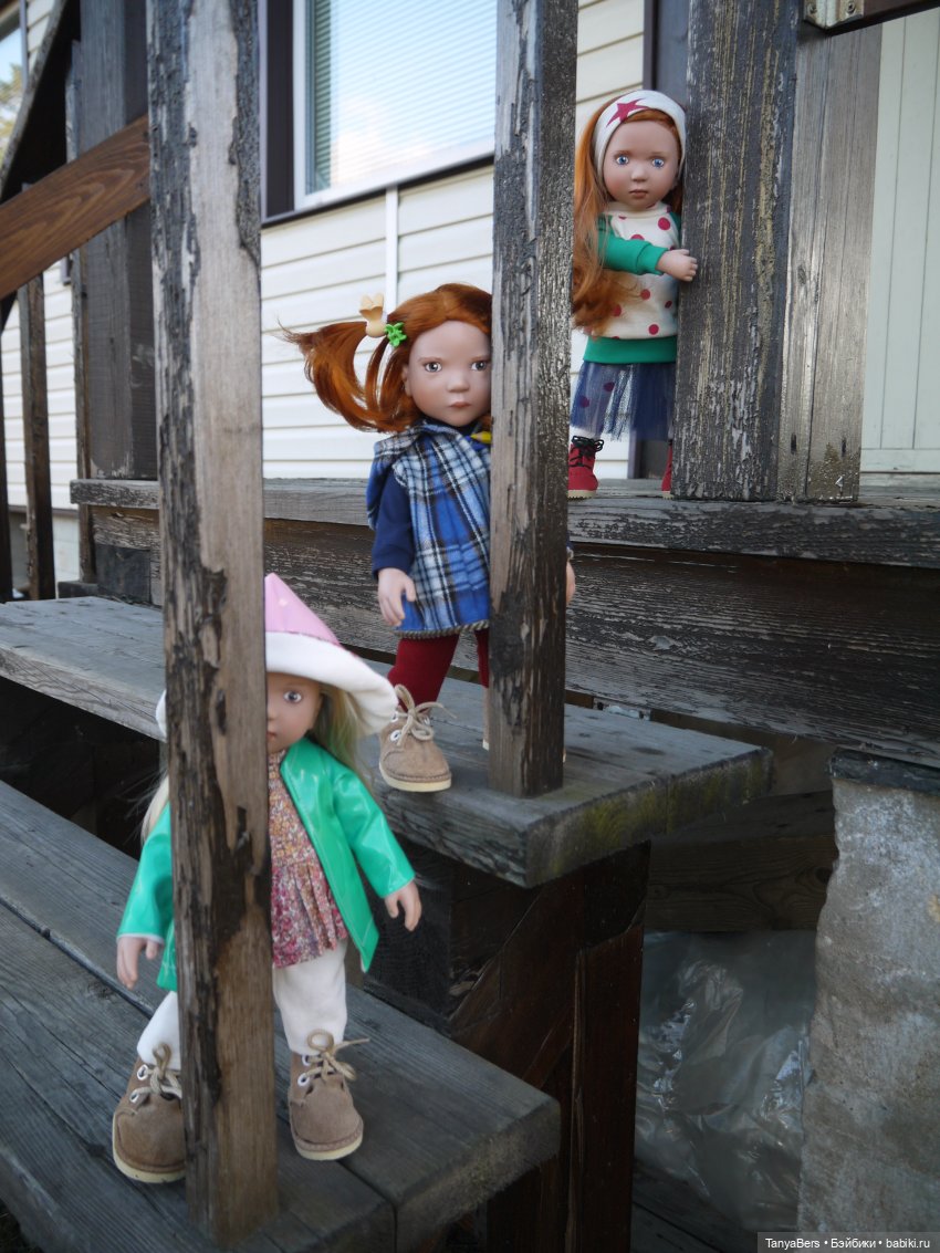 На улицу выносить не хочу, они только с фабрики, а на дачу не едем пока, похолодало что- то на Юге России.Считаю, что только в своем, частном доме, либо на даче фотографировать можно.Улица города- милионника- не для моих кукол, не могу…