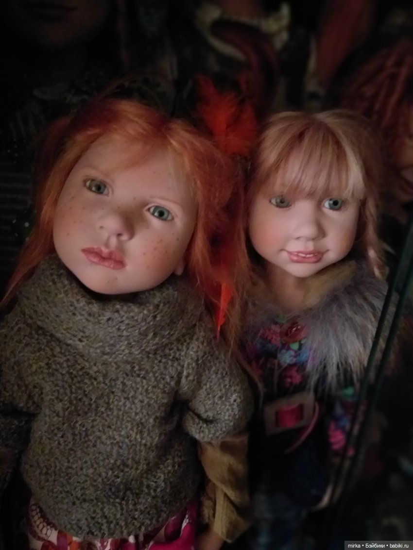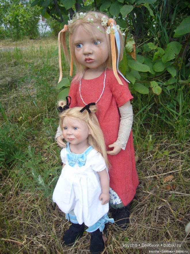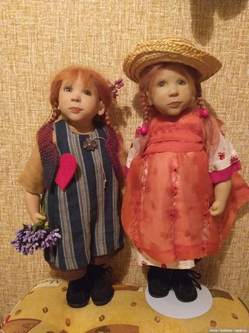 Моя компания Zwergnase пополнилась нереально красивой и редкой девочкой Mimmilill. Эта красотка 2005 года, тираж 125. Яркая и прекрасная Миммилилль одномолдница Katinka, которая при встрече была немного шокирована сходством, но все же девочки тут же подружились. Миммилилль держит в ручке любимую игрушку-авторского котика, а Катинка свою овечку. Куколки ростом 55см, волосы у обеих из нежного мохера, у Mimmilill удивительно пронзительный взгляд темно-карих, почти чёрных глаз.