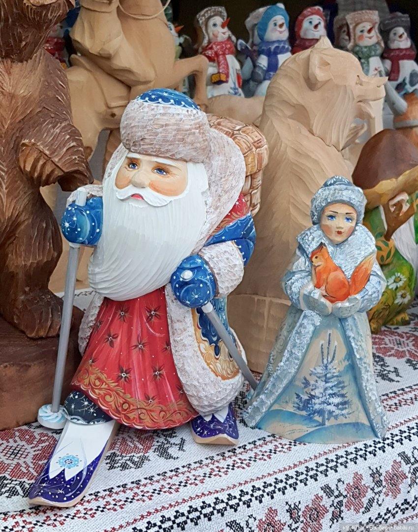 Очень мило смотрится с Мишей :) Деда Мороза, Снегурочку и Снеговика купила на Рождественской ярмарке у нас в Твери!