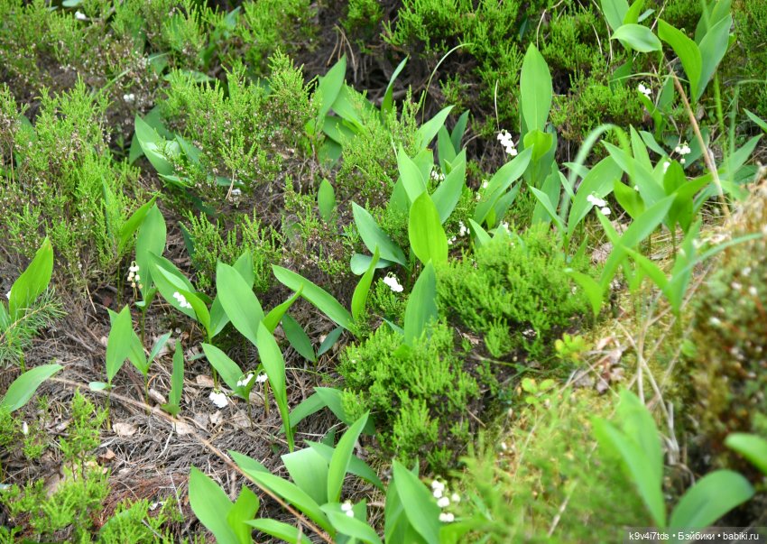 Цветёт брусника, цветочки похожи на ландыши: