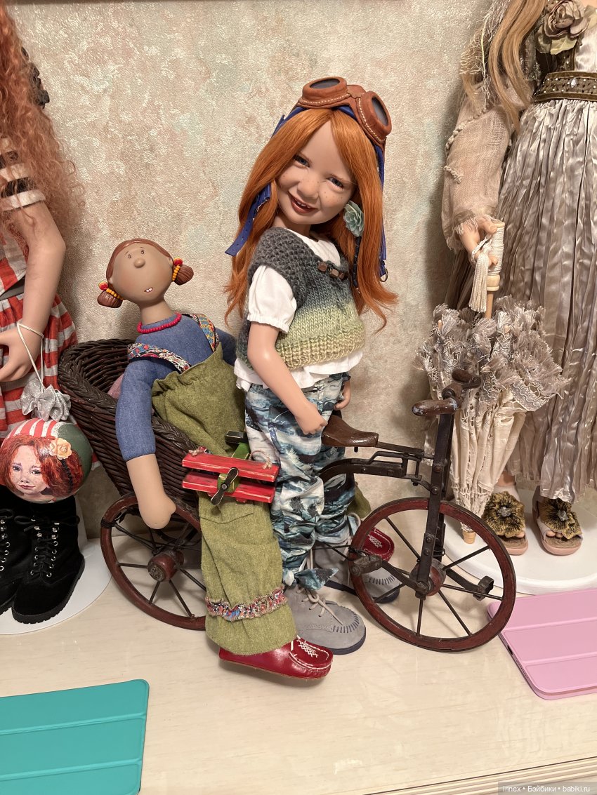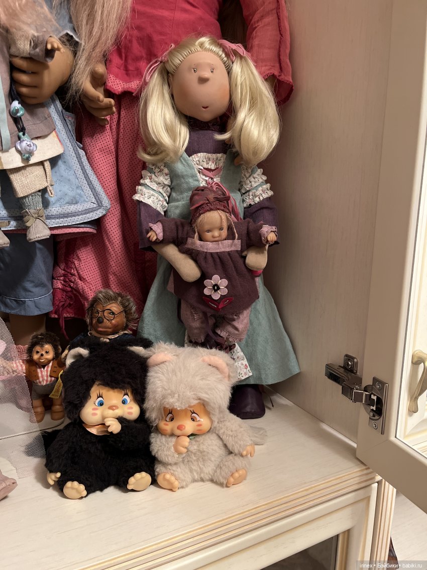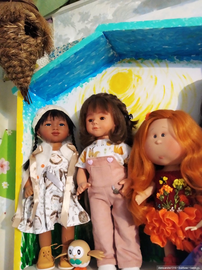 У меня живут 4. Три больших по 50 см и одна маленькая 35 см. У блондинки в бирюзовом каркасное велюровое тело, ножки и ручки гнутся, держит позы и стоит сама. Она ООАК.