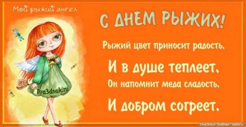 Рыжие это маленькие солнышки, дарящие свет и хорошее настроение! Всех с праздником!🌼