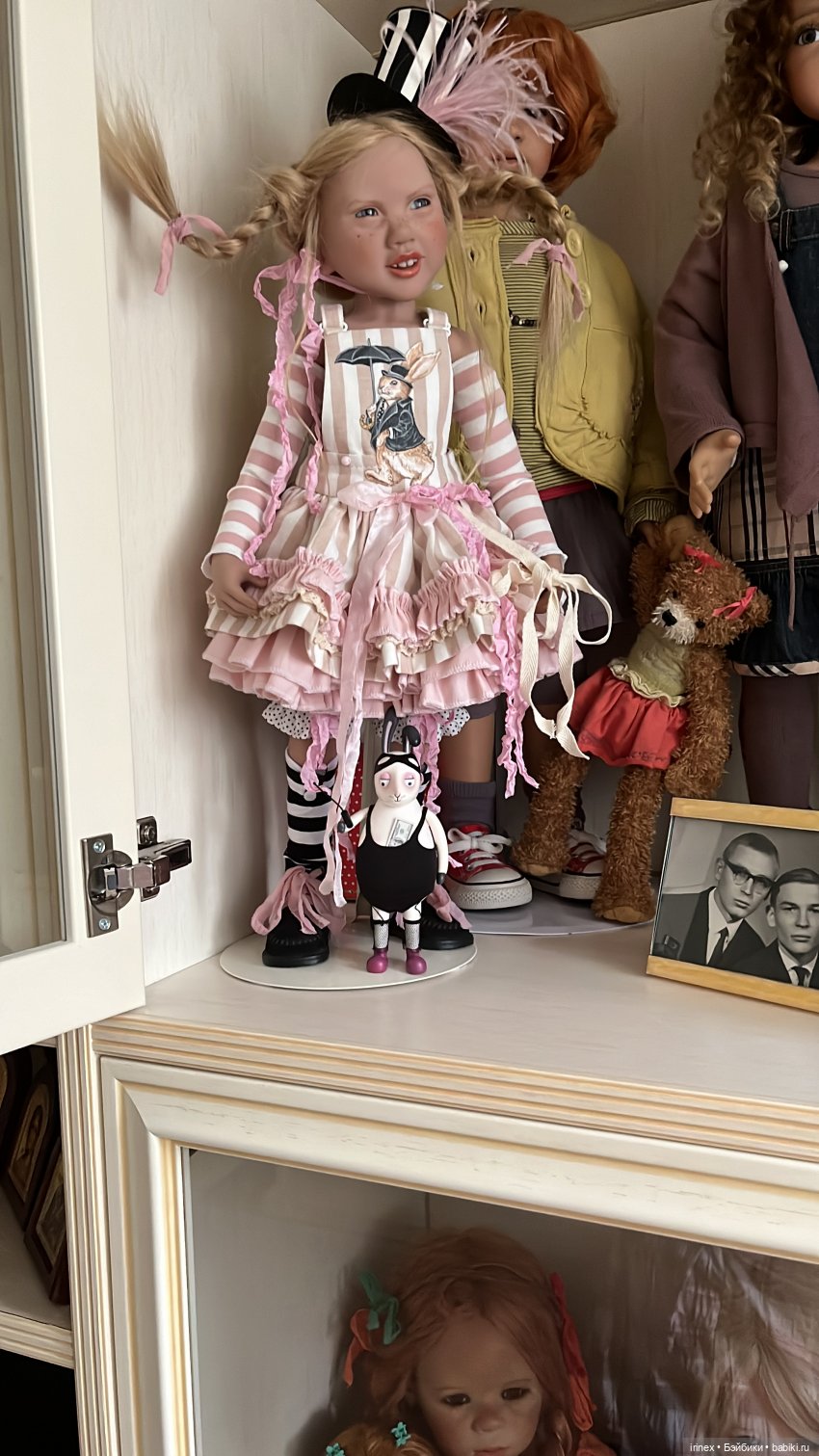К моей подобной кукле как раз сегодня приехал новый наряд. Я купила ее без аутфита, в наряде от другой куклы Zwergnase и в соломенной шляпе. Светлана Орлова (ателье «Безумный шляпник») сшила для нее чудесный наряд, в нем она у меня и стояла долгое время.