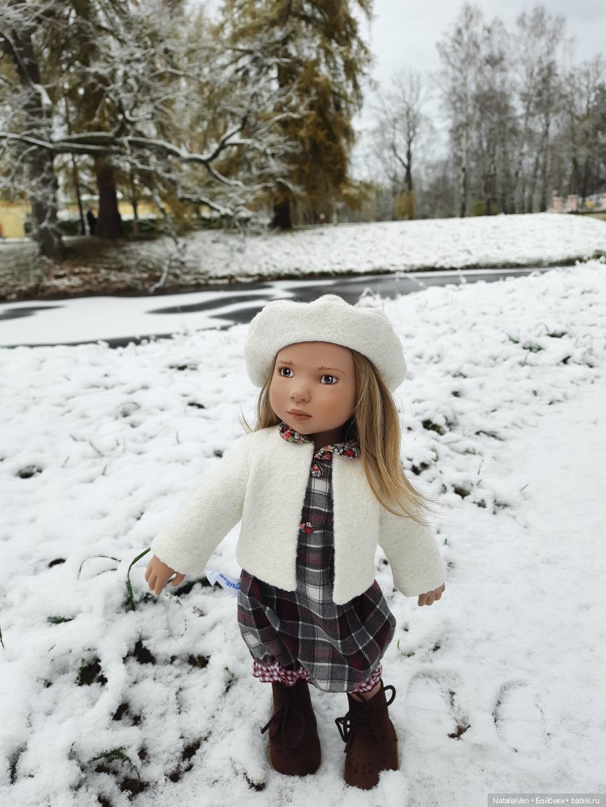 Вчера ещё собрала Полинку для фотопоздравления и началась метель, все завалило снегом)