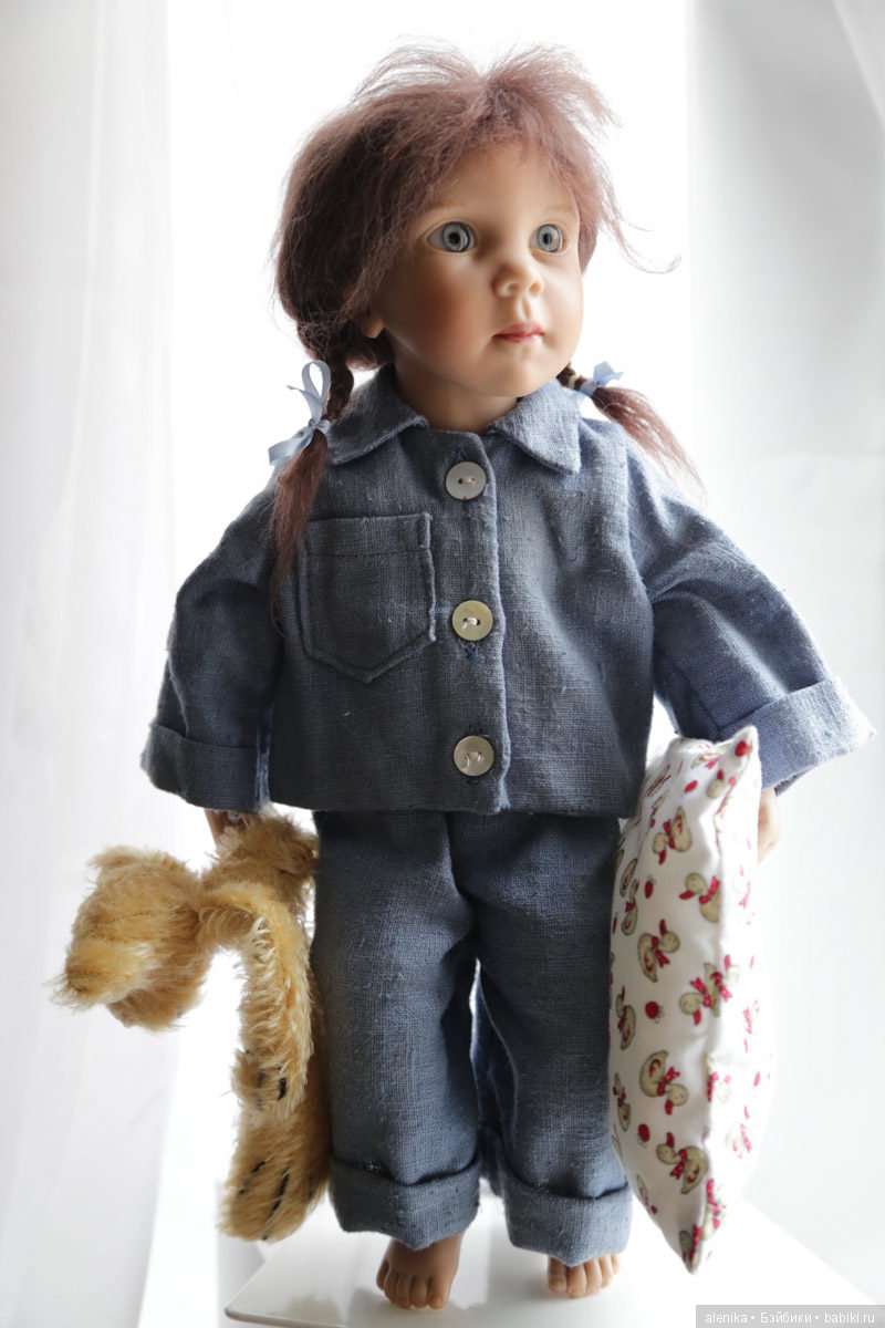 Материалы коллекционно-игровых кукол (Линейка Zwergnase Junior) попроще: волосы в основном вшитые, из синтетического мохера, тело полностью сделано из безопасного винила, личико, включая глаза, целиком нарисовано, но каждой его детали уделено большое внимание.