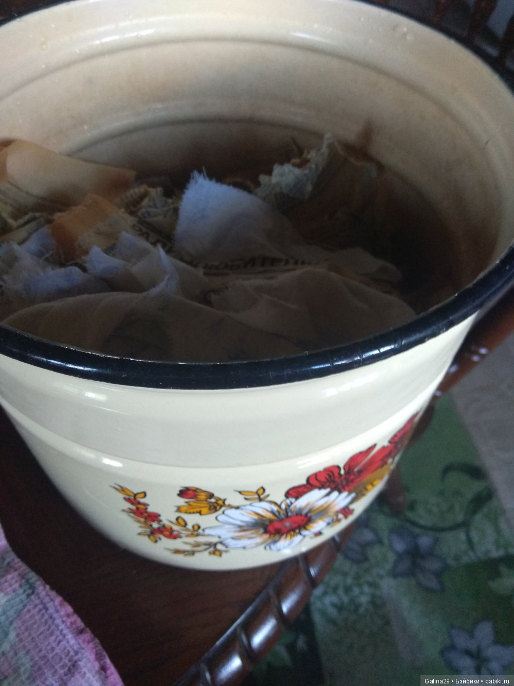 Вот такая она… Резинку сняла, ноги-руки положила в банку и залила Белизной. Голову и туловище пока не трогаю. У тела там серое только на шее. Голову хочу пока другими средствами полечить.