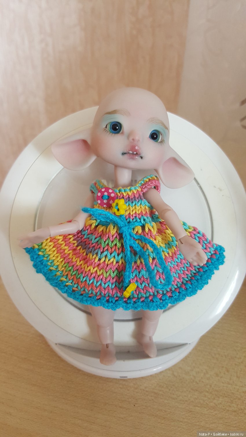 По просьбе заказчицы было связано радужное платье на литлфи. Платье из тонкого мохера, по- моему очень подошло девочке.