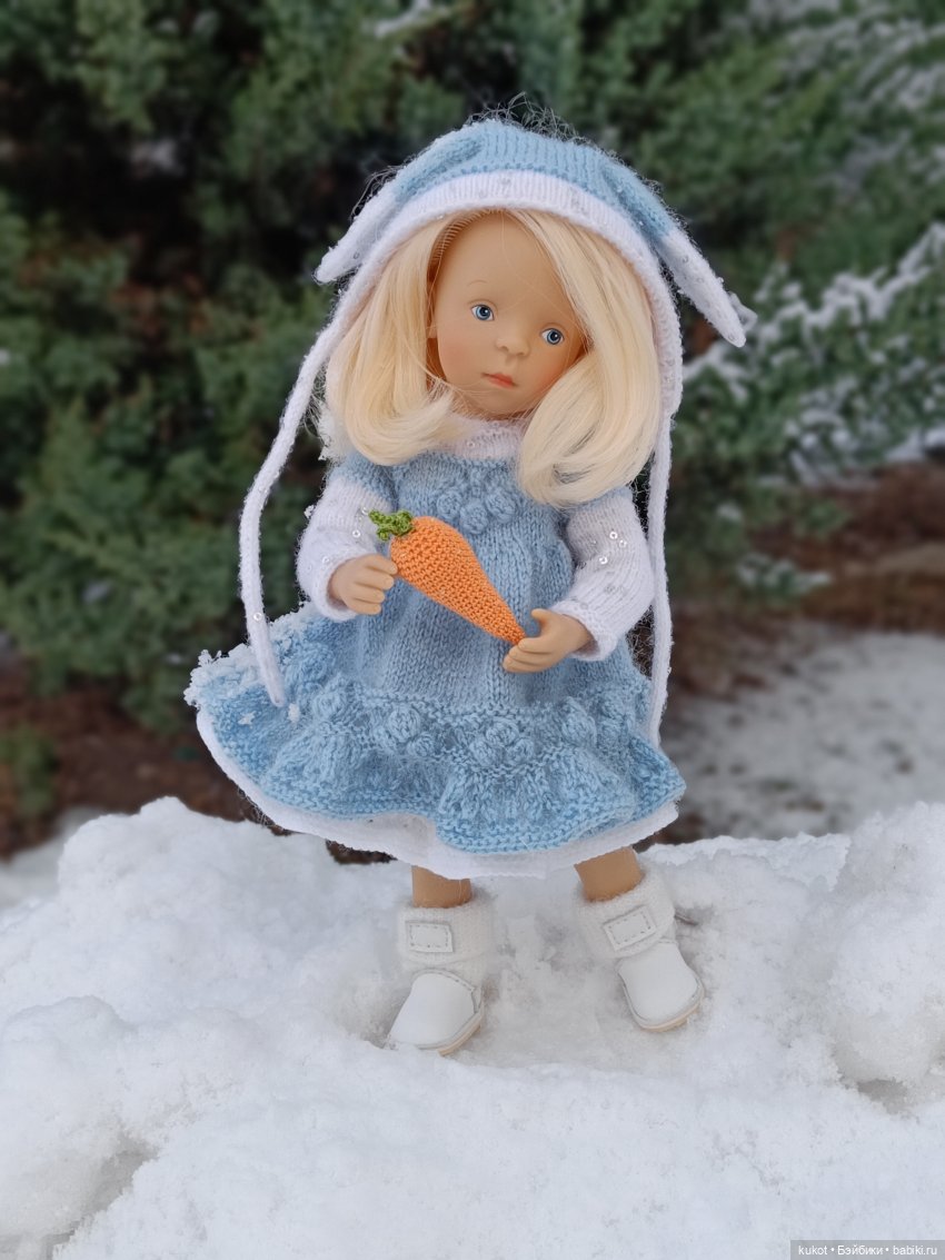 Если поменять толщину пряжи и спиц, то можно связать для куклы другого размера.