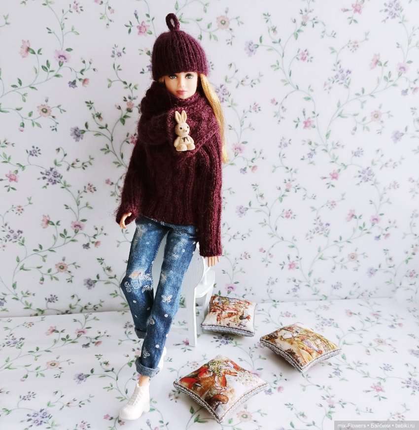 Все одежки связаны в ручную, спицы 1.2, пряжа «имитация норки»