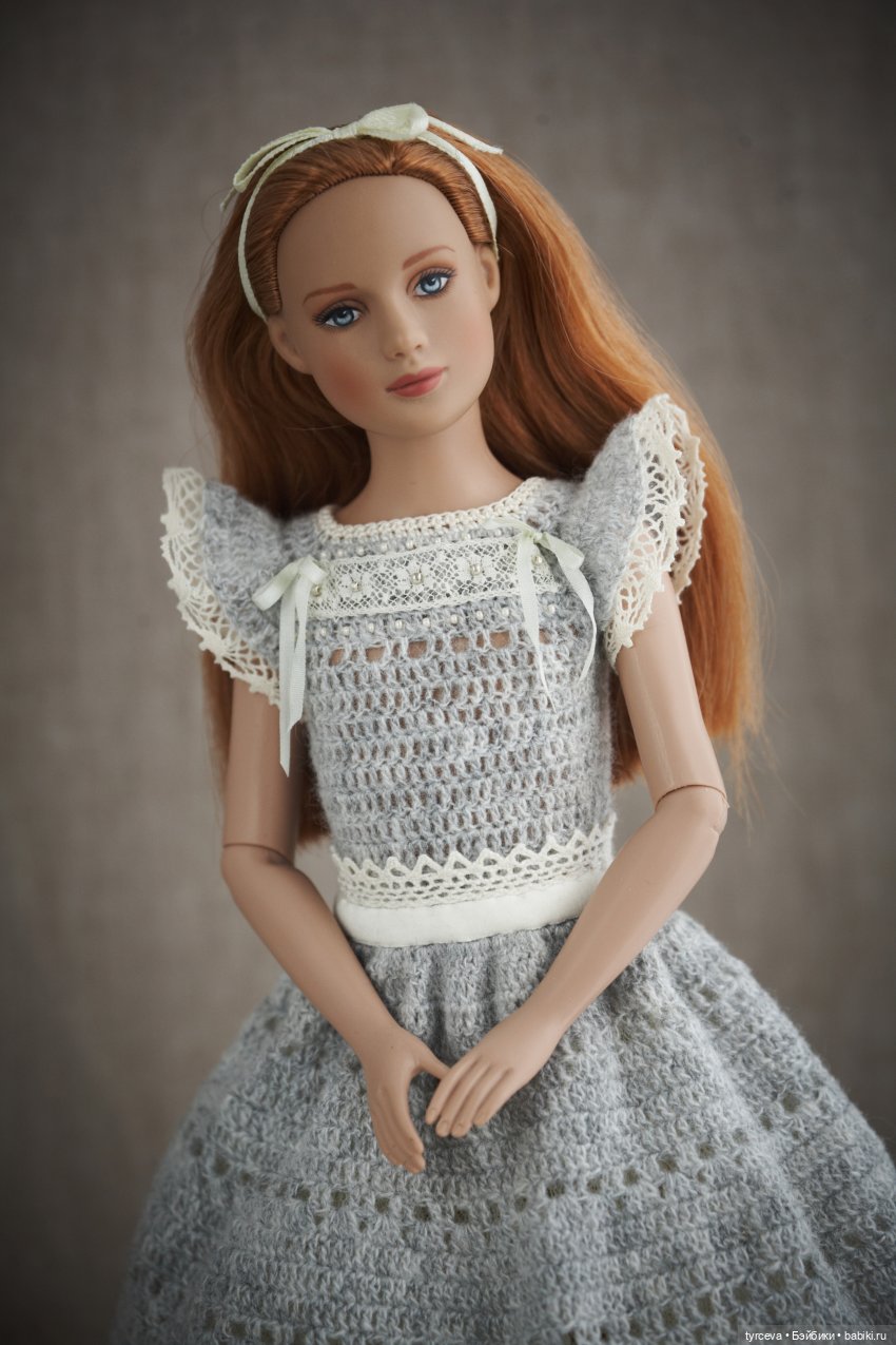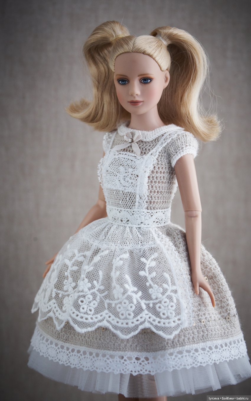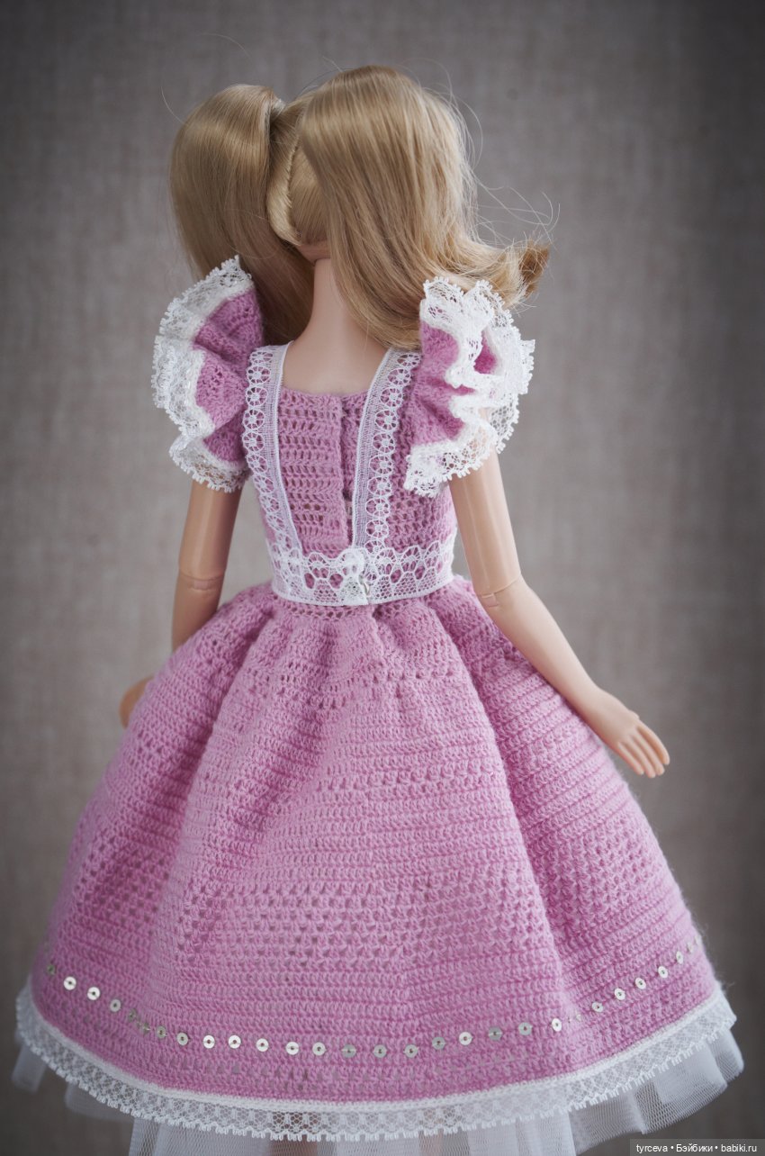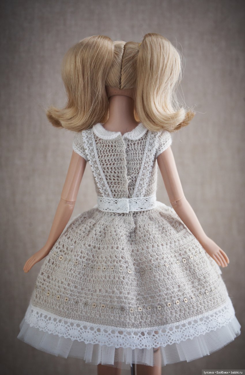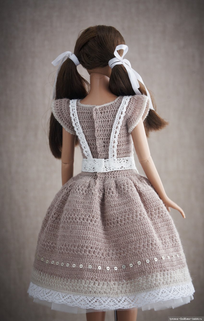 3. Платье оттенка осенняя астра, пряжа 100% шерсть, фартук из кружева шантильи — 2800р.