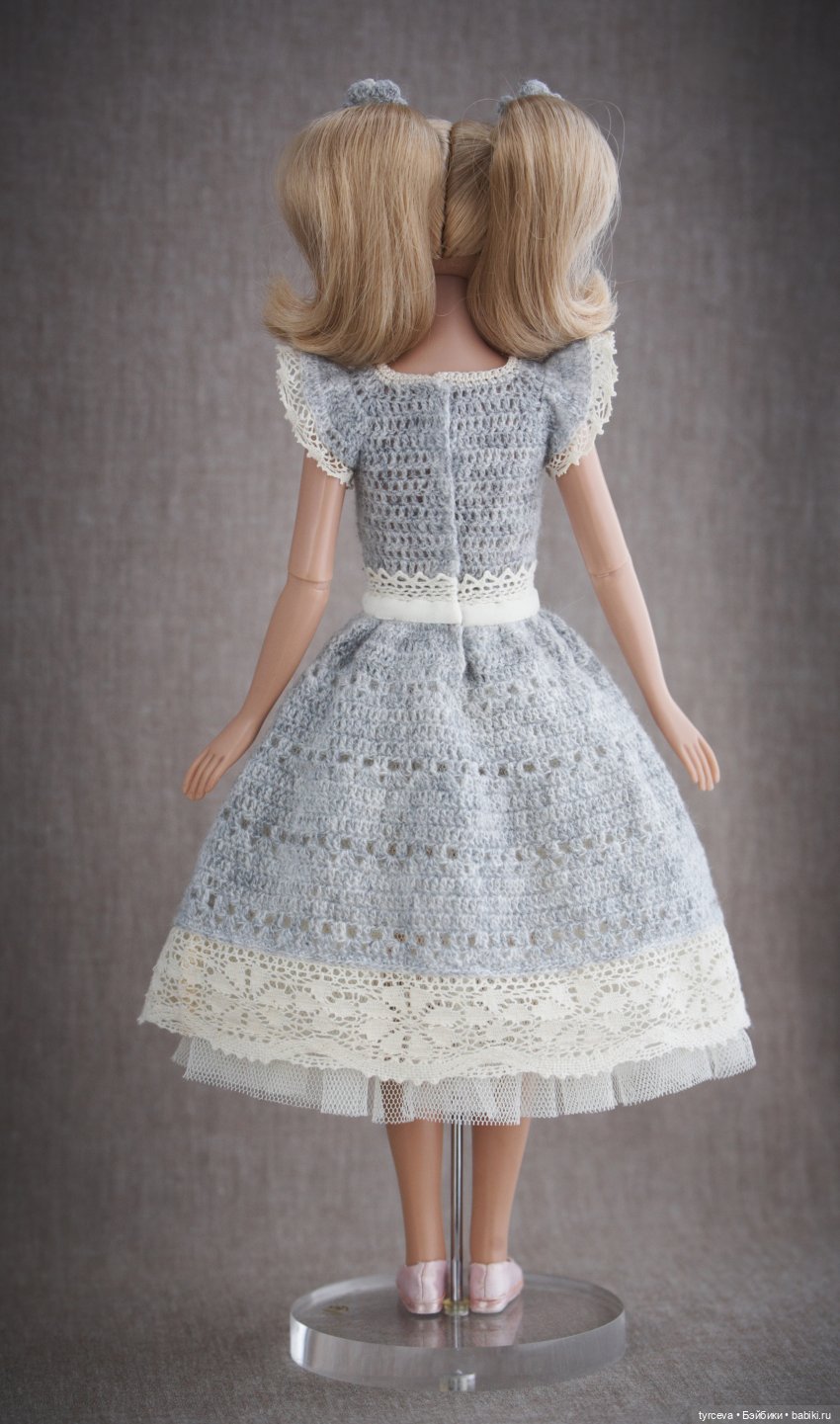 6. Платье серый меланж (хлопок), декор: хлопковое кружево тонкой работы, в том числе французское антикварное, бархатная лента, мельчайший японский бисер — 2800р.