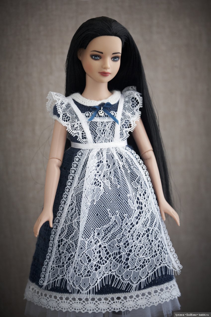 2. Платье полуночно-синее с металлической подвеской в форме черепа, фартук из кружева шантильи — 2700р.