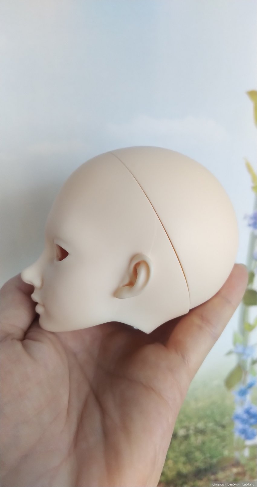 Голова без дефектов, без трещин и сколов. Затылочная крышка становится довольно плотно, без зазоров, но фиксация нестабильная, немного люфтит и желательно дополнительно фиксировать затылочную крышку кусочком пластилина для глаз.
