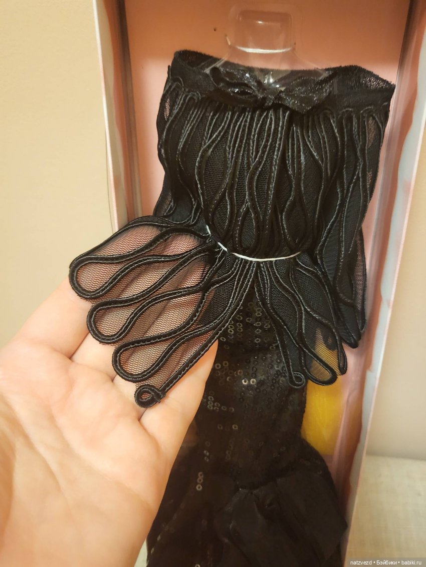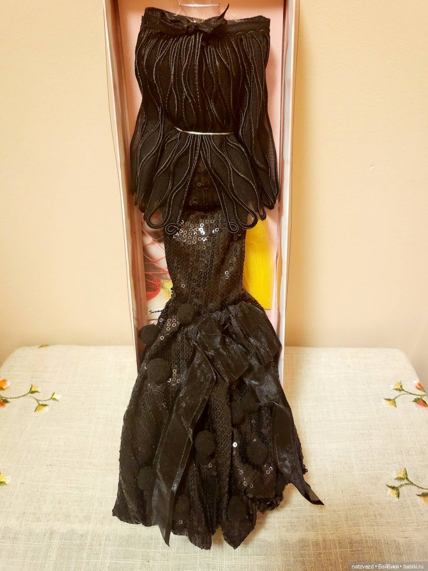 3) Чёрные вечернее платье силуэта «русалка» и накидка из органзы с вышивкой от аутфита Sybarite «BLACKJACK». Подойдут многим другим куклам, не стесняйтесь спрашивать:) Наряд новый, только примерила для наглядности.