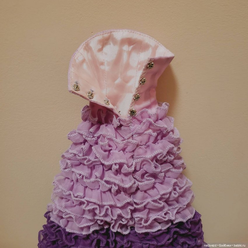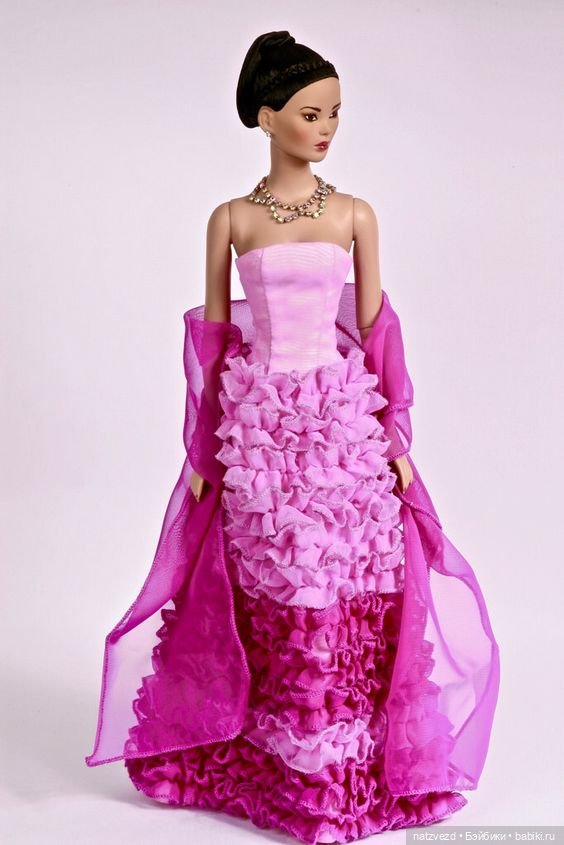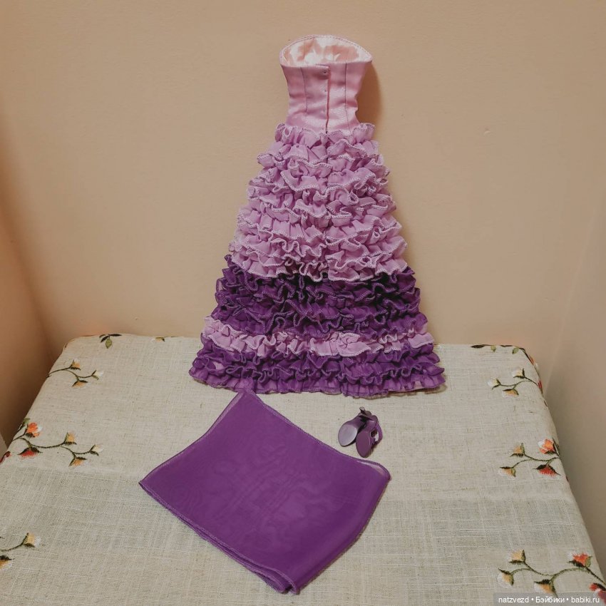 6) Сиреневое платье с рюшками, шифоновый палантин в тон, босоножки от «Sheer Beauty» Mei Li Тоннера. Подходит куклам с телом Тайлер (Tyler).