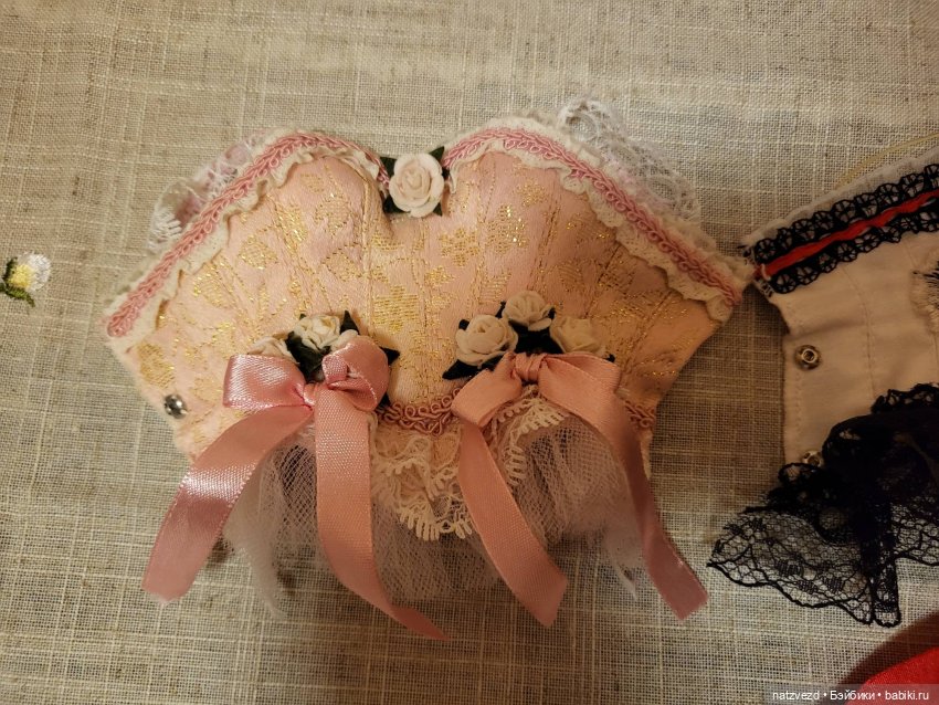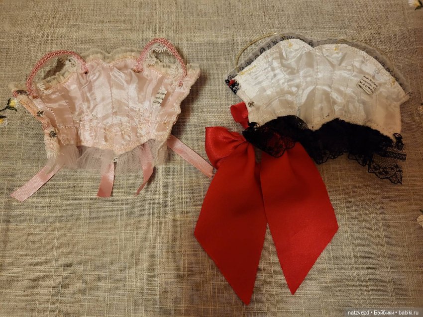 5) Симпатичные бюстье для кукол Evangeline (розовое — «Vintage Rose Bustier», белое с чёрным и красным — «Evening Thorns Bustier»). Подходят виниловым Сибариткам (Sybarite, Superdoll).