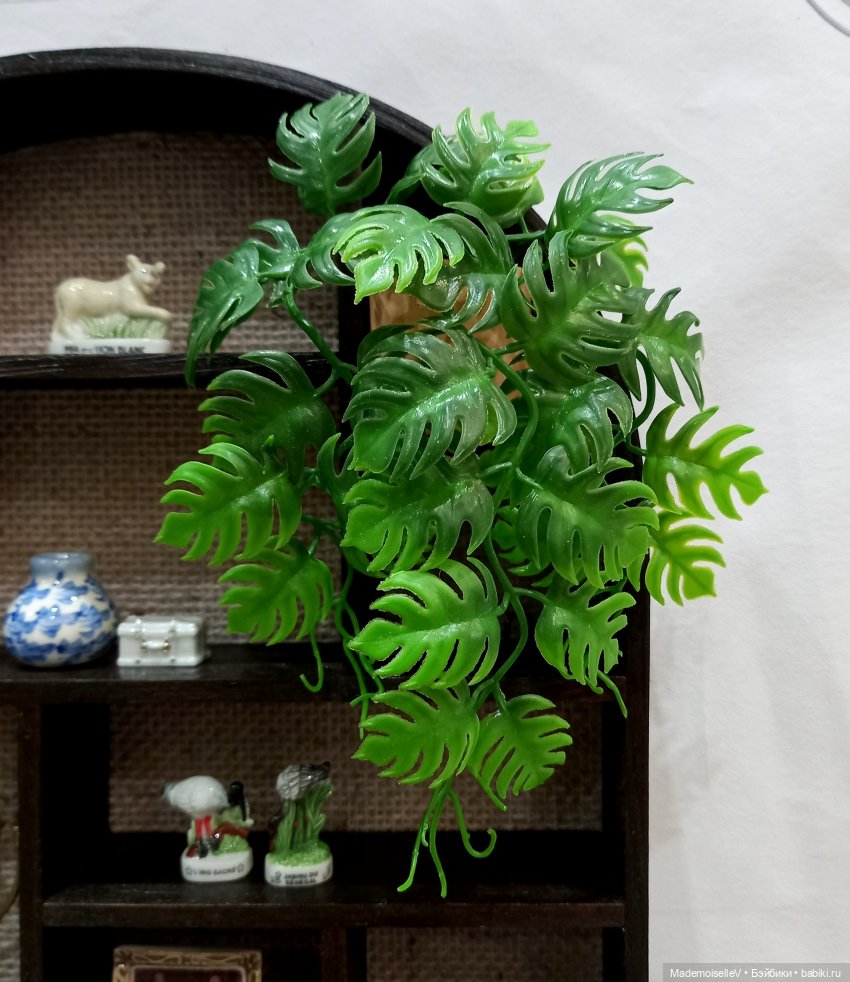 Ветви монстеры из пластика. Горшок керамика, высота 3 см. Горшок не ронять!