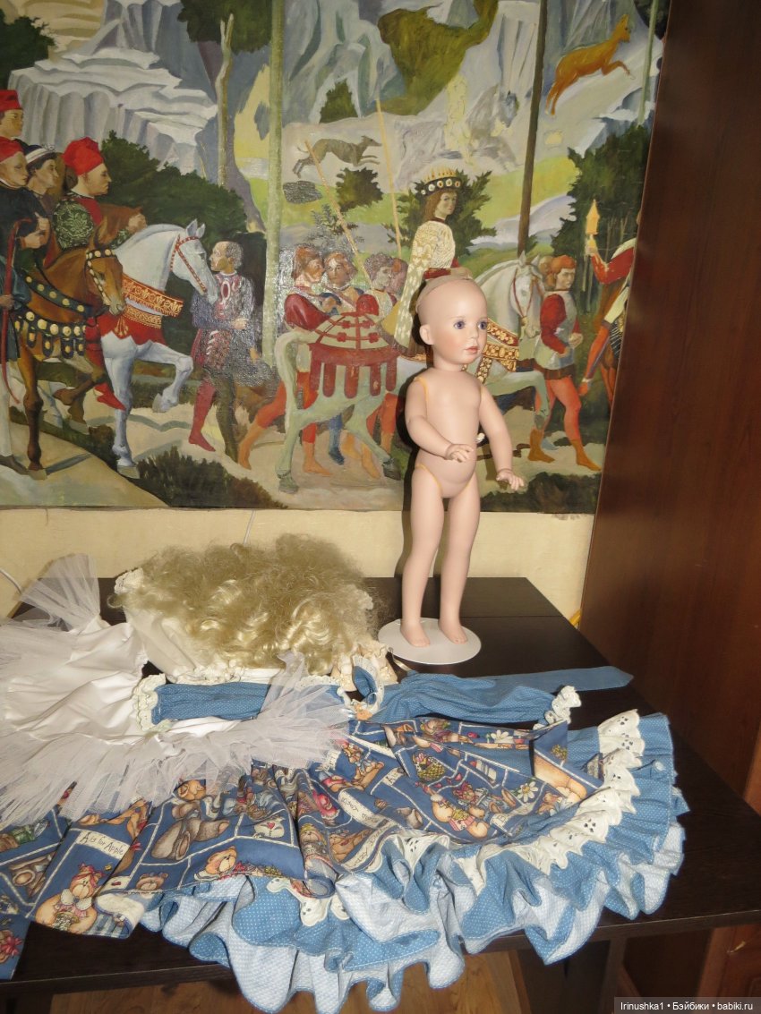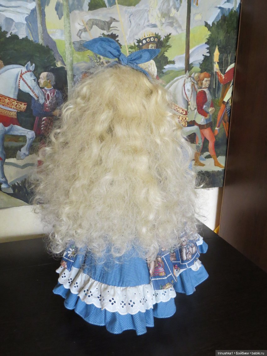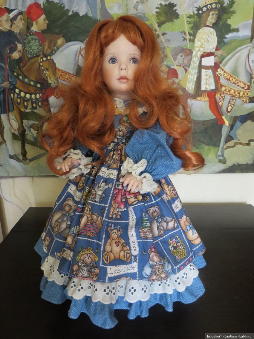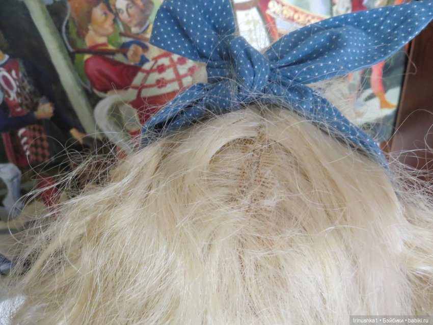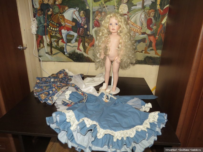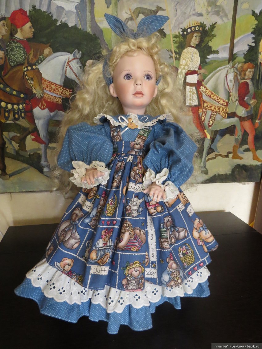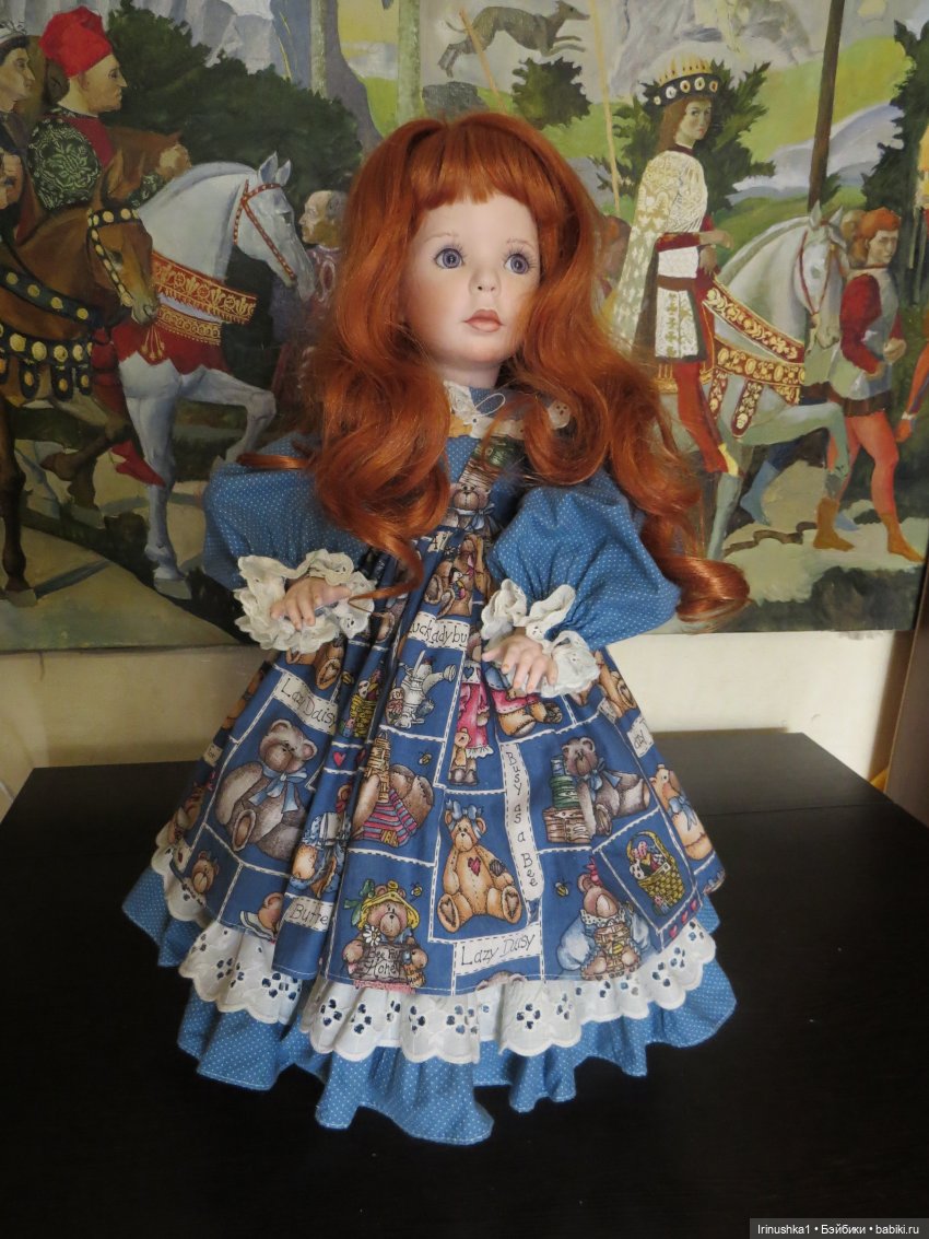 Представляю полностью фарфоровую куклу от совместной работы Линды Рик и Дианы Эффнер (Linda Rick и Dianna Effner). Удивительной красоты глаза. Надпись на пузике, к сожалению, подстерта за чем то прежним хозяином, но частично видна-кукла 1998 года. Этой кукле больше четверти века и у нее есть свои нюансы: на ножке есть след, как от стертой надписи, выставлю фото ниже. Туфельки заменены на новые. После снятия парика, на тряпичной шапочке есть пятнышко, под париком не видно совсем. Для такого возраста очень не плохо сохранилась. Документы и родная коробка не сохранились, такая она ко мне приехала. Одно время стояла в витрине под стеклом, потом была убрана. Подставка идет с куклой (что редкость). Стараюсь описать все нюансы как можно подробнее. Кукле 25 лет и вообще, это чудо, что она ко мне тогда целая приехала.) Все, кто работает с фарфором знает что это-ждать такую куклу из Америки. Упакую очень хорошо. Кукла тяжелая! В доме не курят и нет кошек-собак. Снята одежда, парик. Все постирано и поглажено. К своему удивлению обнаружила, что не только платье сзади на клею, но и бант на голове приклеен на клей, что по моему просто варварство.( Клей с парика пришлось вырезать. Парик густой и особого урона это не принесло). Приклеивать парик не стала, новая хозяйка сможет менять образ красавицы по своему усмотрению. Платье сзади просто сошью, при желании платья можно будет менять. Натяжка отличная, голова крепко сидит на плечах.) Головка полностью очищена от клея, на паричке по кругу есть остатки клея, на платье в районе воротничка и шва немного осталось. Добавлю подробные фото на перечисленные нюансы.