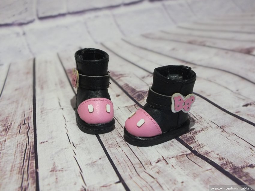 6) черные сапожки Минни с розовым бантиком, без застежки, очень качественные, размеры по подошве 2,9 см * 1,3 см. Отлично Twinkles, пукифи, никкибриттикам, Lati Yellow. На ирреаликов не налезают. Каждая пара в коробочке.