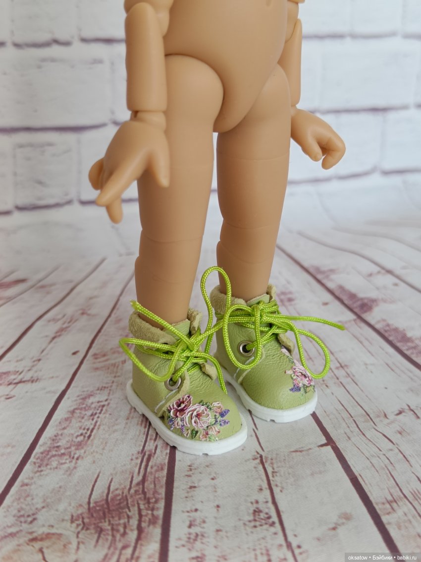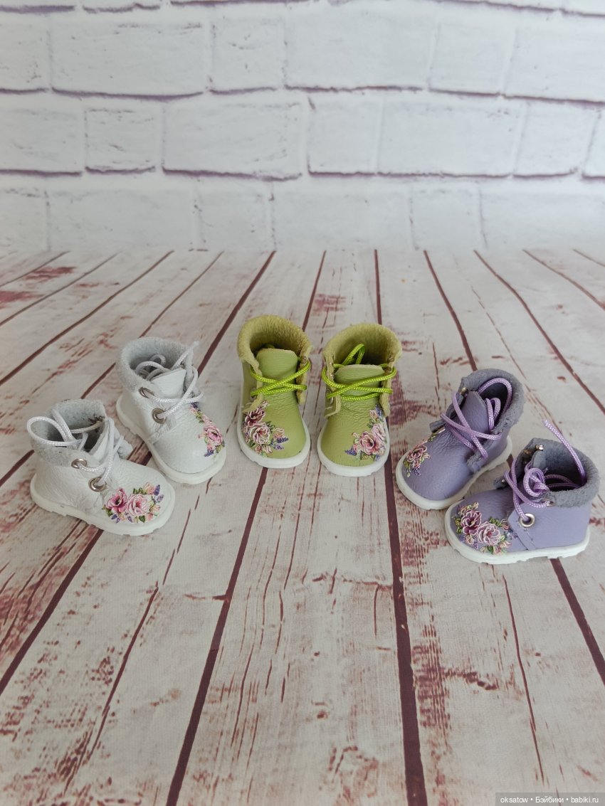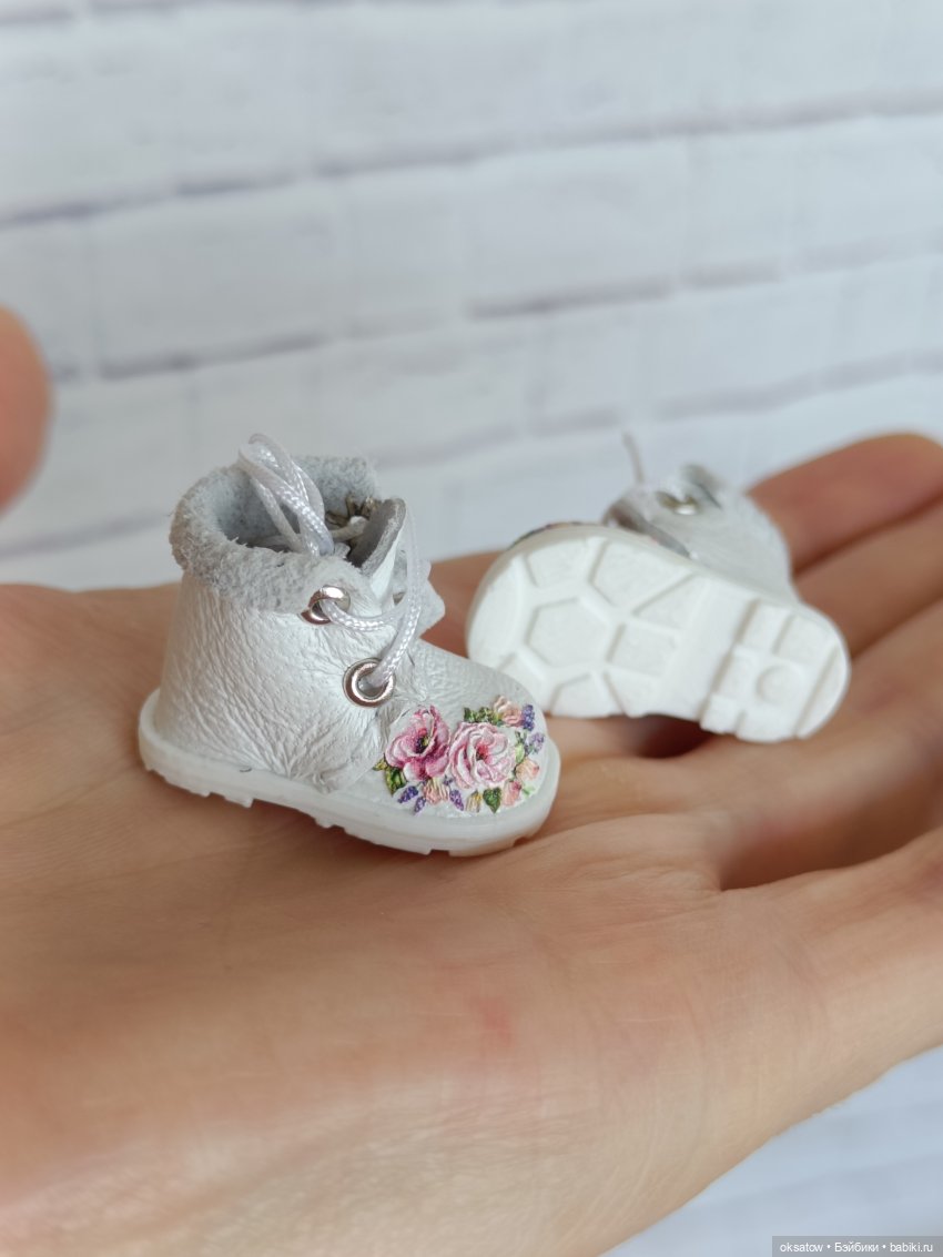 10) ботинки из натуральной тонкой кожи на шнурках, сбоку цветочный рисунок, по типу аппликации. Подойдут Lati Yellow, Irreladoll, Twinkles, Pukifee, Pocket TTYA, деткам от Nikki Britt тоже подойдут, но лучше на носочек. Размеры по подошве 3 см * 1,6 см.
