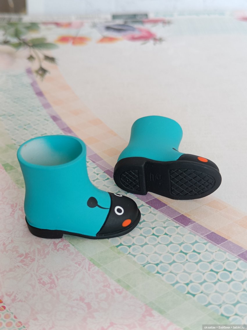 7) ПРОДАНО! очень редкие резиновые сапожки лазурного цвета с мордочками жучков. Материал по типу пластика, не гнется. Подошва рельефная, как у настоящих человеческих сапожек. Подходят на Twinkles, ирреаликов, на Lati Yellow одеваются с трудом из-за подъема стопы. На пукифи большие. Размеры по подошве 3,5 см * 1,5 см.