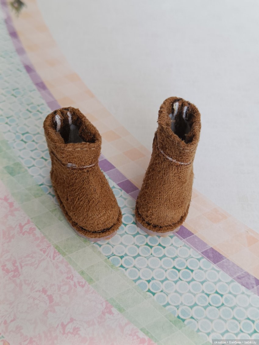 8) коричневые велюровые угги, очень качественные, размеры по подошве 3,2 см * 1,5 см. Отлично на Lati Yellow и ирреаликов, пукифи большие, но можно одевать с толстым носком.