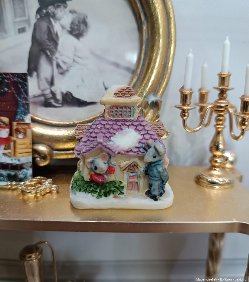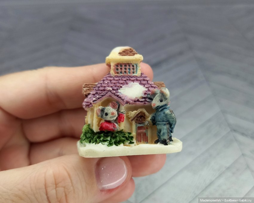 Миниатюрные домики с мышатами, винтажные, привезены из Италии. Полистоун, высота 4 см. Клейма нет. Без сколов.