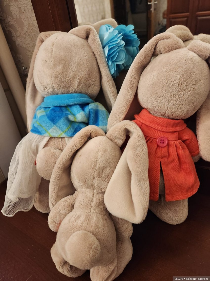 Коллекционая Зайка Ми Ягода «крыжовник». Одета в милое белоснежное платье классического покроя из жатого хлопка и сеточки. В комплекте — мягкий жакетик из бирюзовой фланели с голубым бархатным воротничком. Декор — бирюзовый атласный цветок на ушко и зайка-игрушка из бирюзового бархата с атласным бантиком. Лот состоит из трех игрушек. Маленькие были в игре, см. фото.