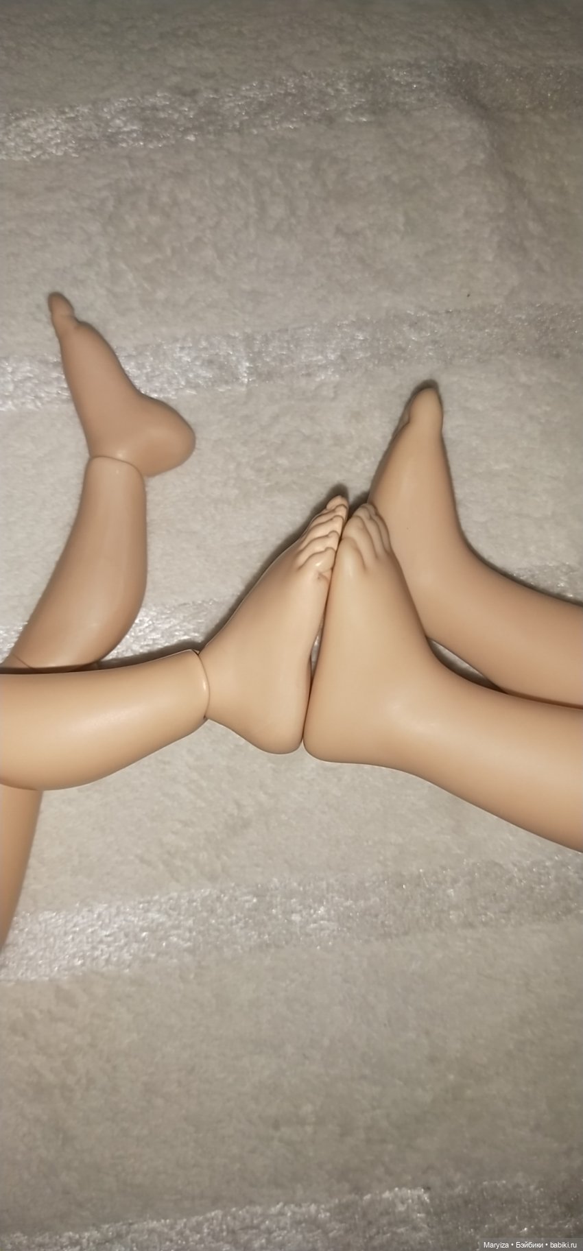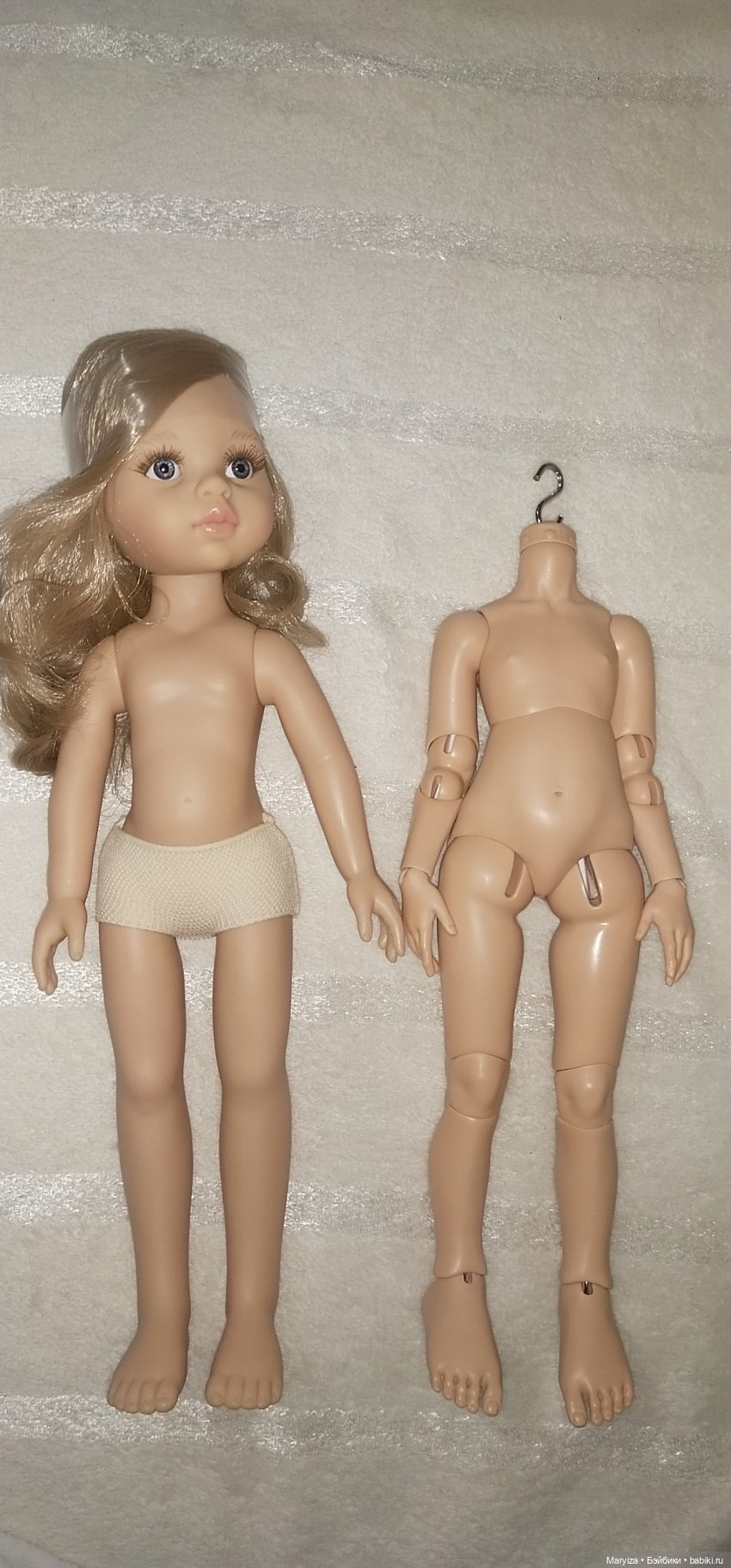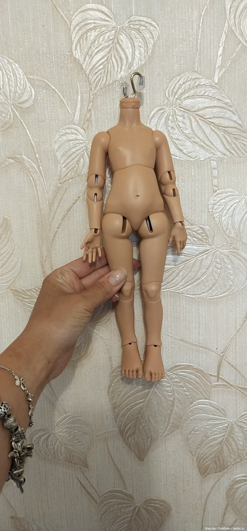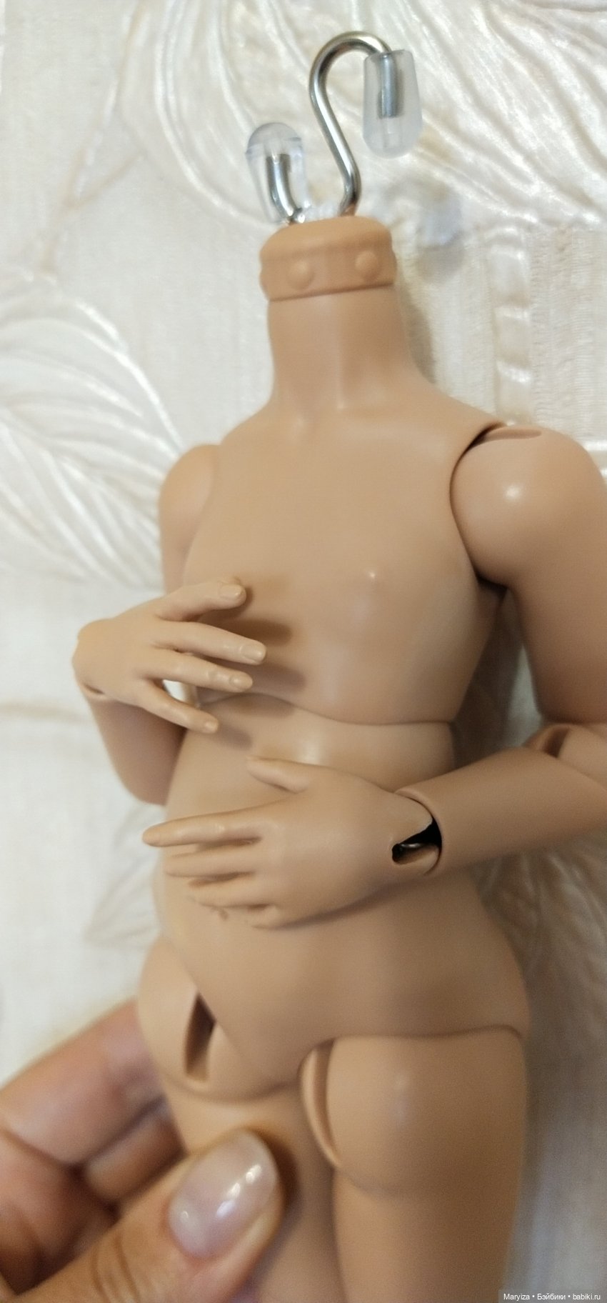 Тело из полиуретана. Кто автор — не знаю. Покупала на выставке несколько штук. Качество отличное, тяжеленькое, подвижное, скульптурная детализация хорошая. Совпадение с цветом головы идеальное. Стоит самостоятельно. При сгибании шарниров не оставляет царапин на поверхности как у тел из фотополимера. Можно использовать активно как для игры, так и для фотосессий.