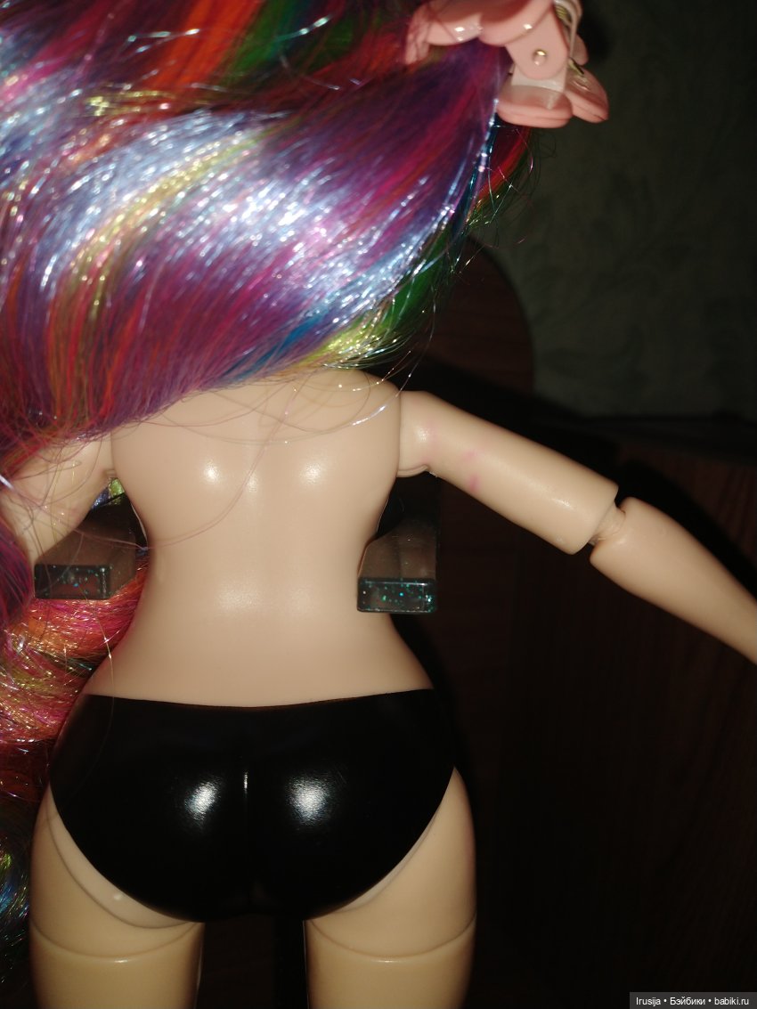 Есть небольшой окрас на руках от одежды другой подобной куклы.
