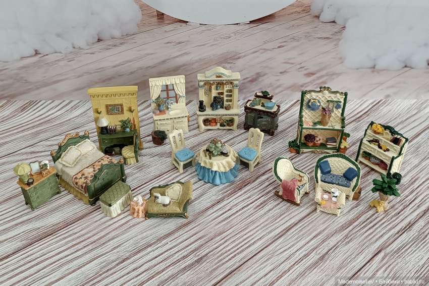 Формат 1/24, могут служить украшением кукольных полочек, отдельным предметом коллекционирования или мебелью в игрушечный домик для кукол! Можно расставлять в произвольном порядке.