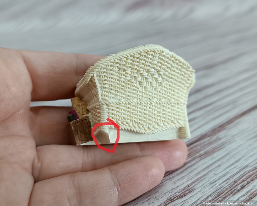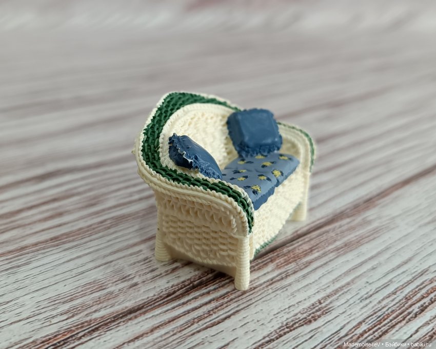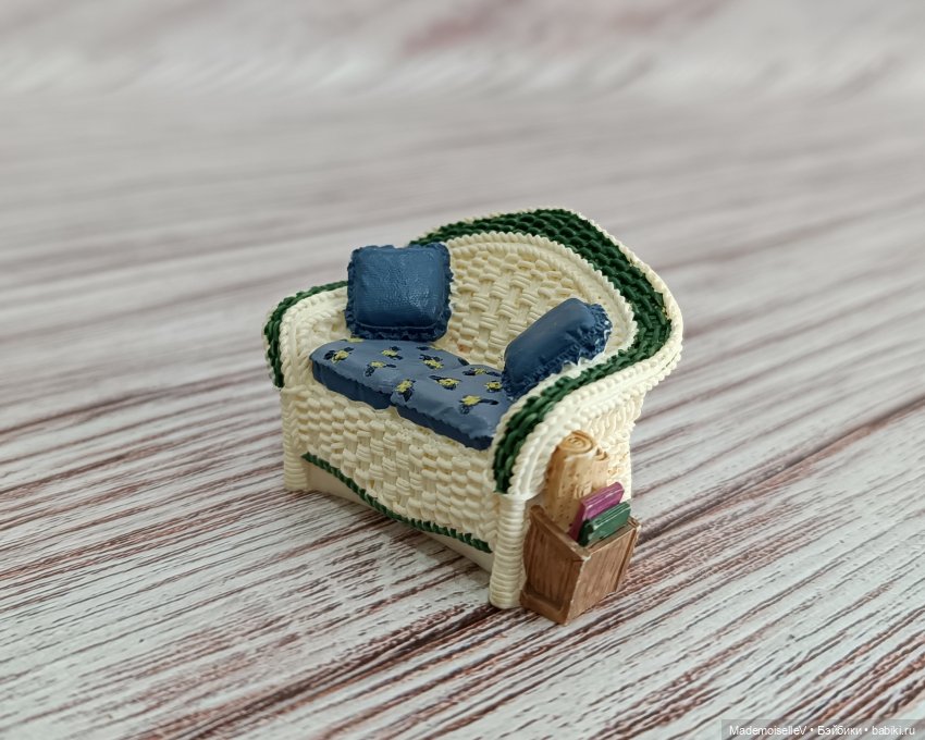 — диванчик, высота 3,5 см, ширина 4,5 см, глубина 2,5 см, скол задней ножки