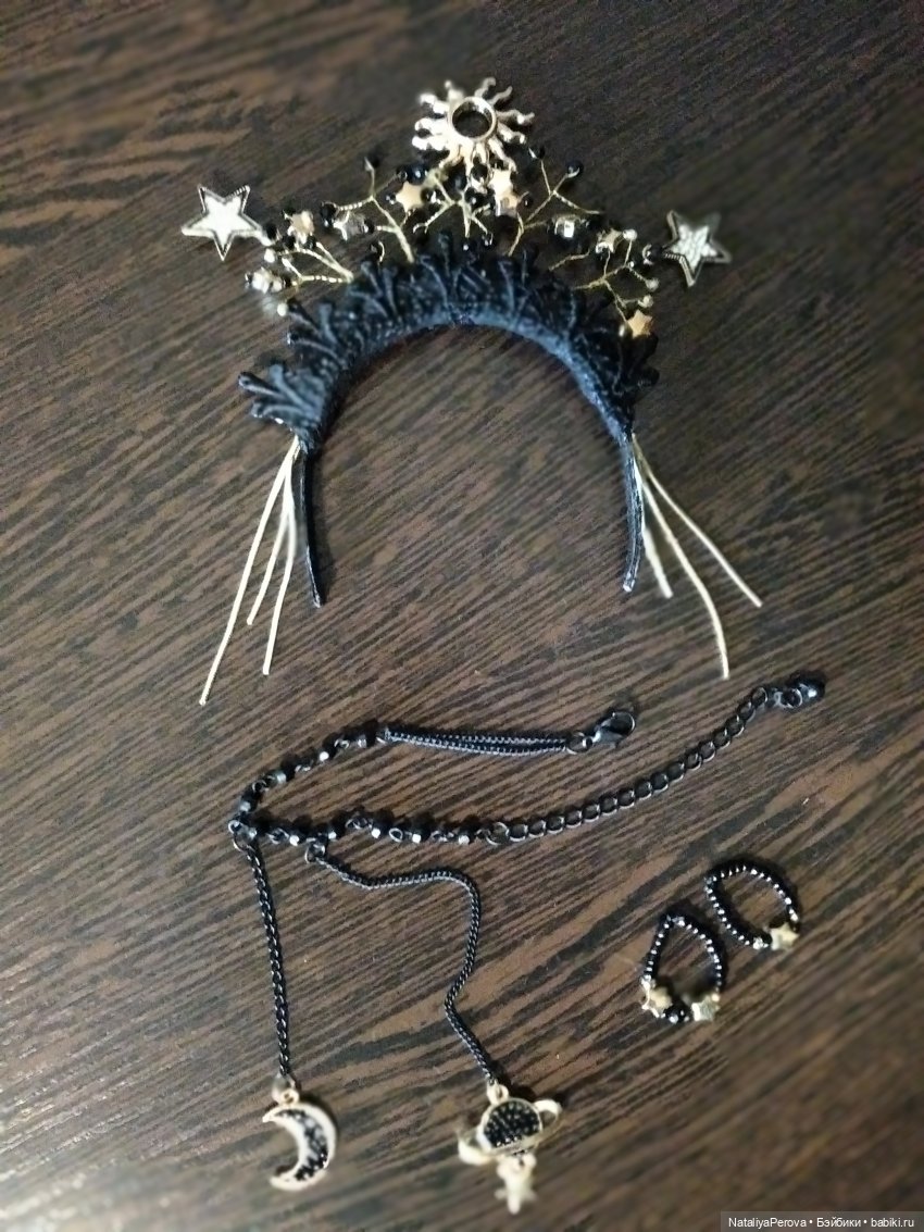 Диадема может крепиться к капюшону, есть небольшой крючочек.