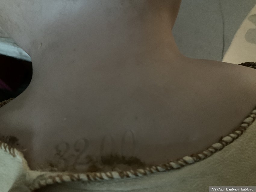 Под реставрацию- нет тканевых ног от колен, распались на молекулы прямо в руках. Надо пришить руки- но там все в рабочем состоянии, немного повозиться. Глаза стекло, родные, но сидят просто на сентипоне, так как масса разрушилась лепочная, а у меня нет её в наличии. Глаза спящие, надо только на место поставить. Тело в очень неплохом состоянии, трещин нет. Но лицо на редкость хорошее( зубки костяные, не бумажные)))