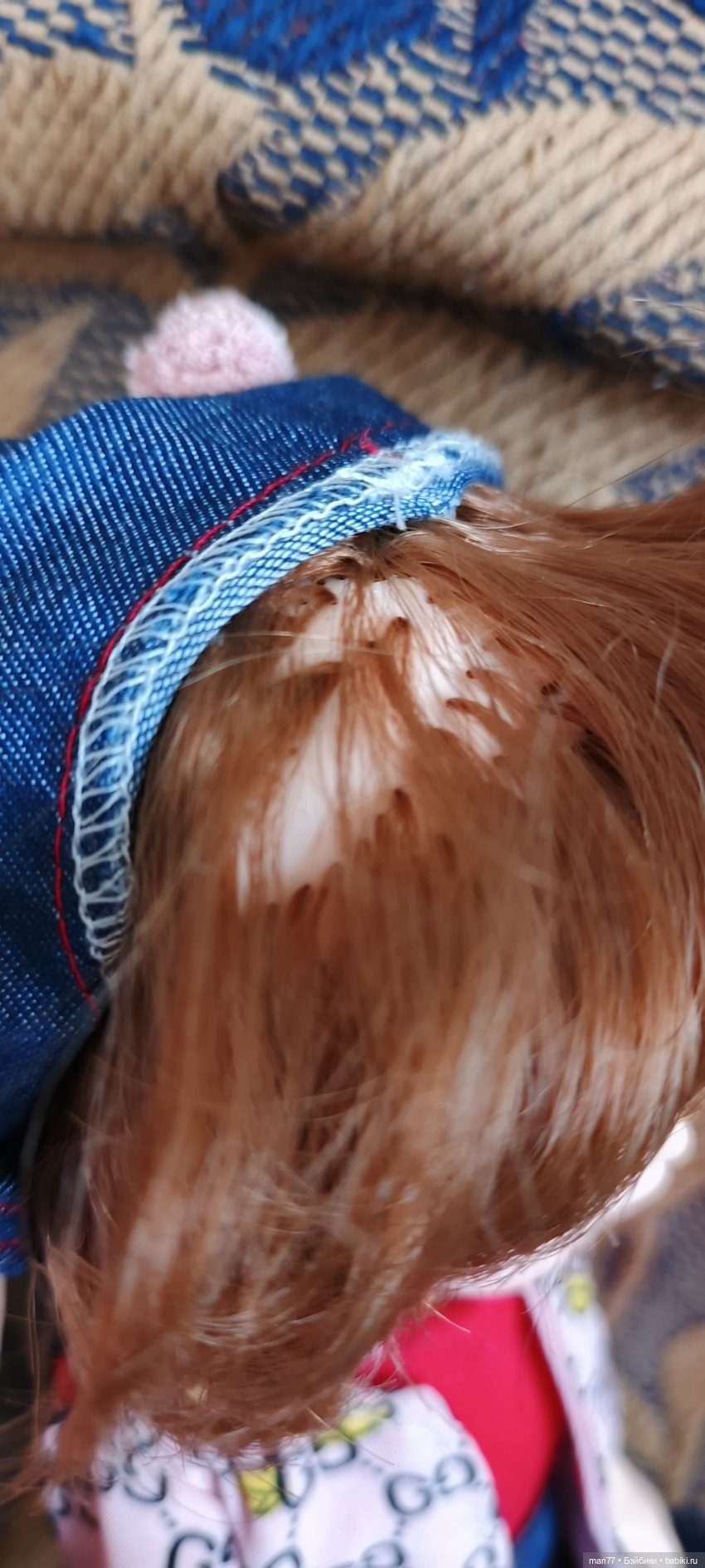 У мальчика пожелтел кончик носика. Шапочка прибита к голове в нескольких местах. Есть дополнительные кисти.