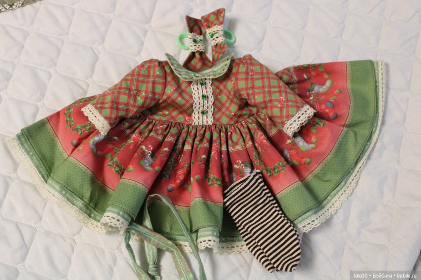 Комплект для Mae Meadow dolls, рост 38 см. Сшит из авторской ткани от Кукольного мира, подкладка лифа из батиста, распашное, застёжка на кнопочки. В комплекте — платье, бантики, носочки