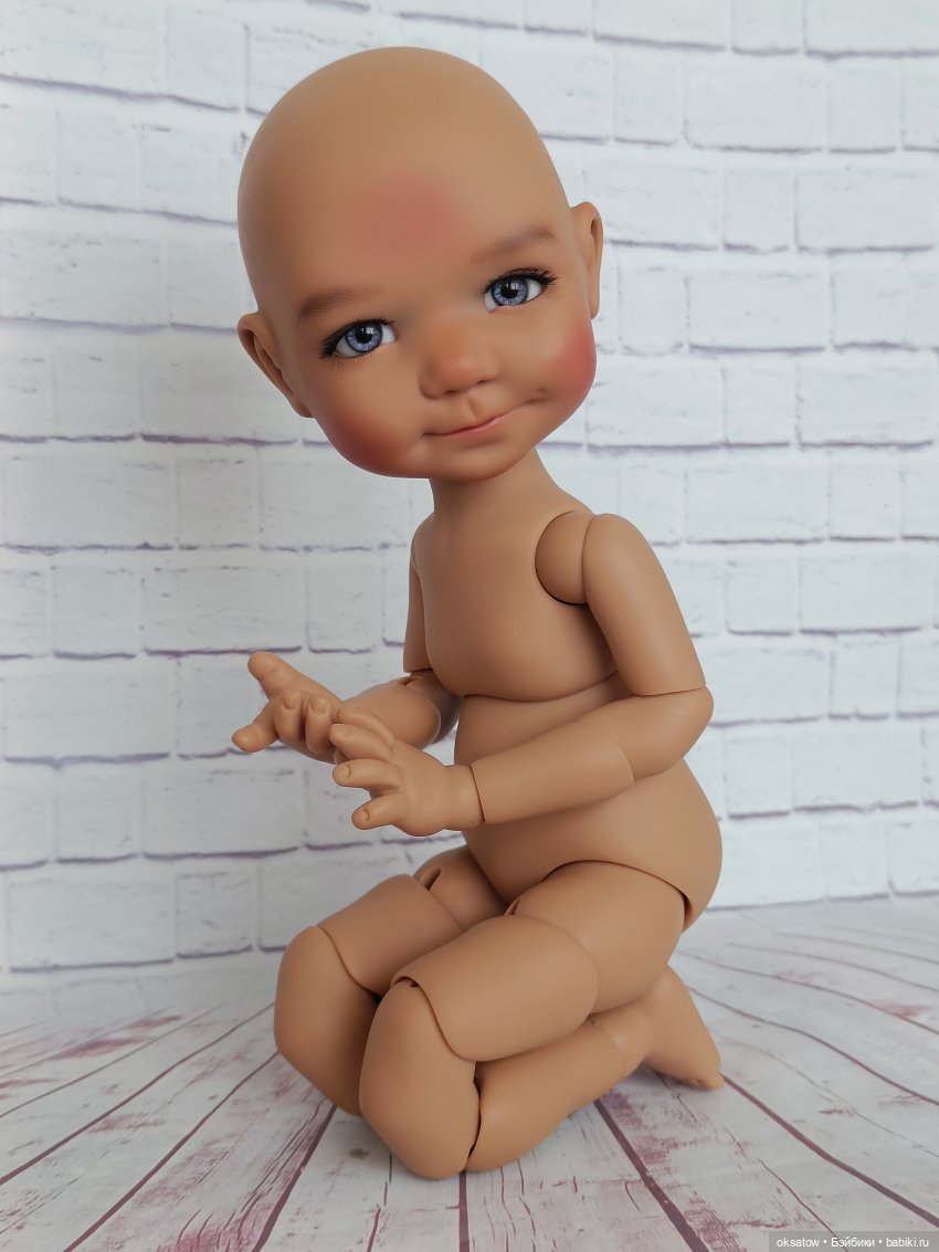 Мейк фабричный. Кукла без дефектов, сколов, трещин. В шоколадном скинтоне допустимо наличие на теле куклы блестинок, это особенность скинтона и это не считается браком, они очень легко убираются меламиновой губкой.