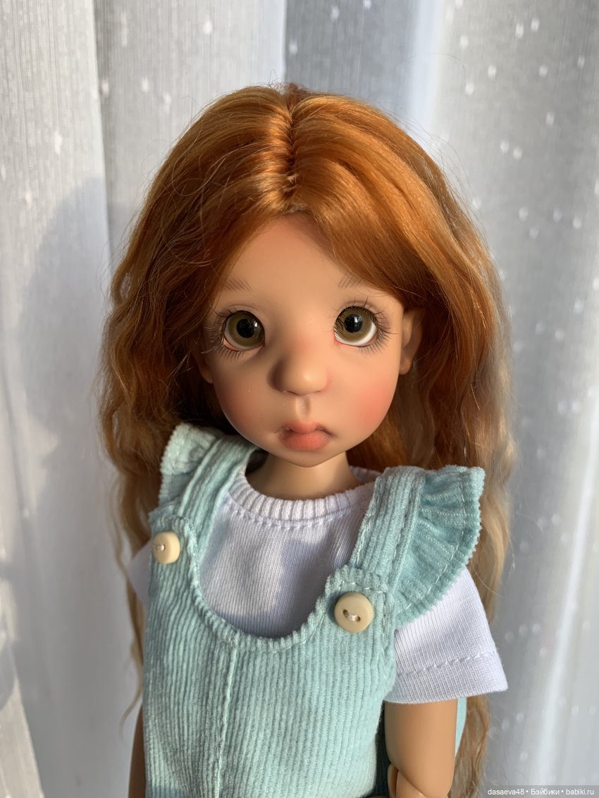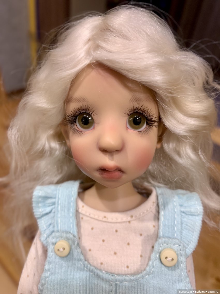 Натяжка отличная, кукла не игранная, даже не переодевалась толком. Купила ей у бывшего хранителя наряд и парик в этом она и стояла на полочке недолго время, и уже несколько месяцев лежит в комоде в родном мешке.Но у Ленни утеряны реснички, у Кайешек часто родные реснички отклееваются, мейк родной, глаза тоже Реснички сама подклеяла на пва клей, легко убрать просто смочив водой.
