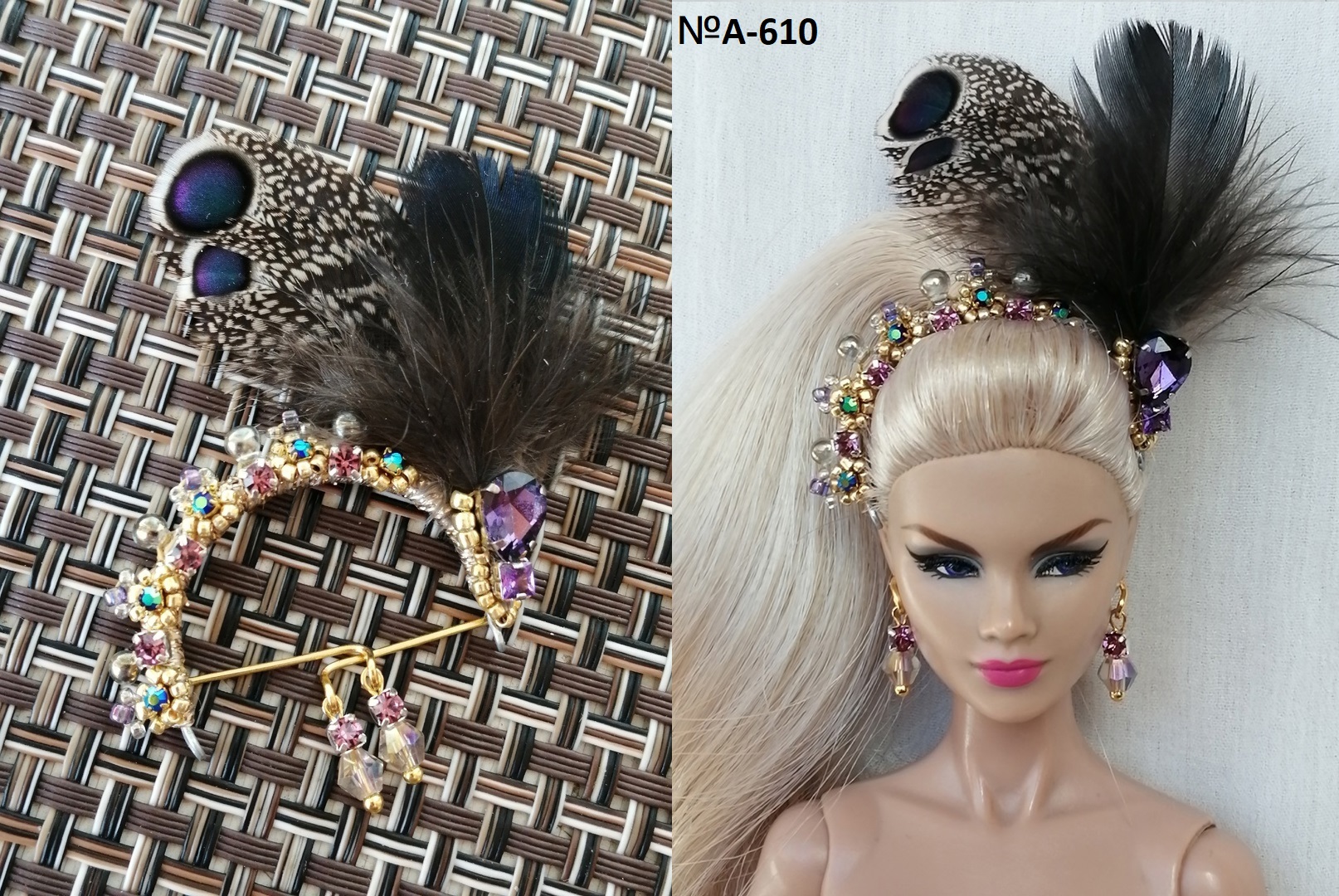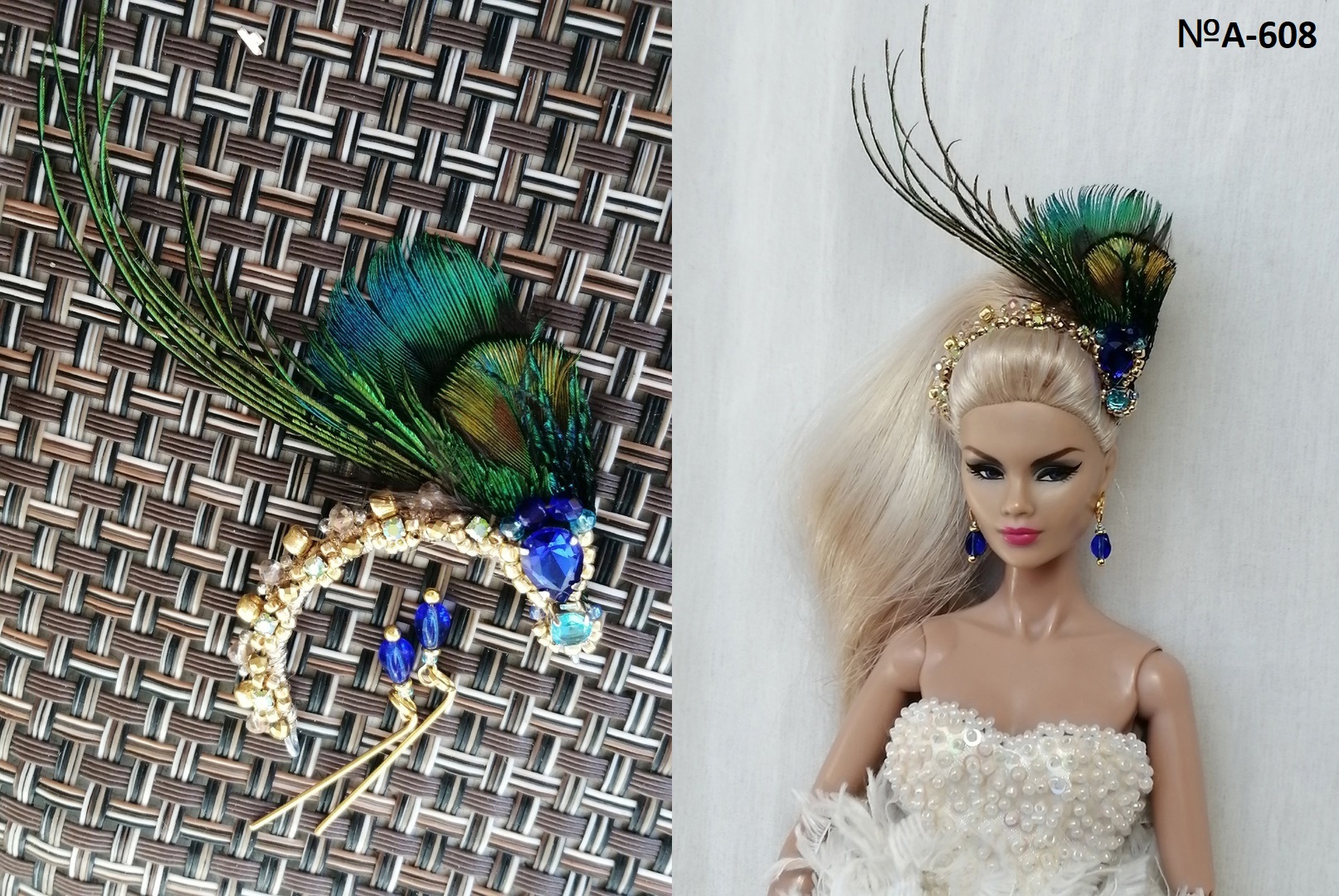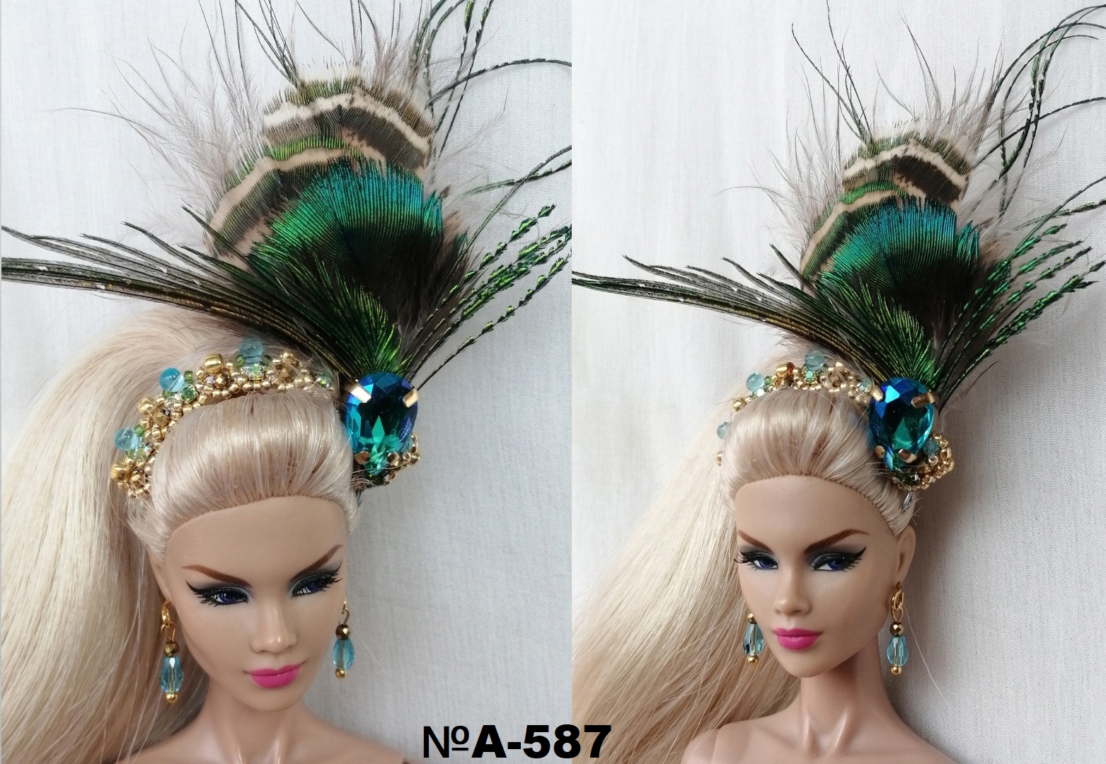 Украшения с перьями павлина для кукол интеграти, Барби, Integrity, бжд кукол