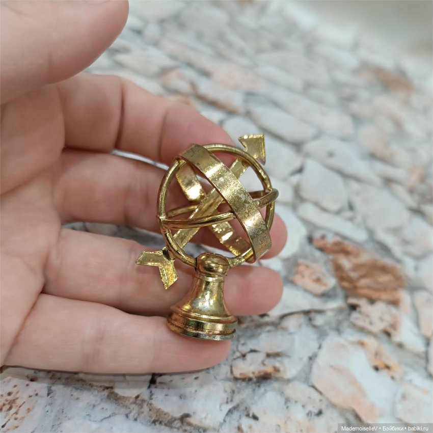 2. Армиллярная сфера — латунь, высота 5 см. Присутствует неравномерная патина со всех сторон. Цена 450 руб.