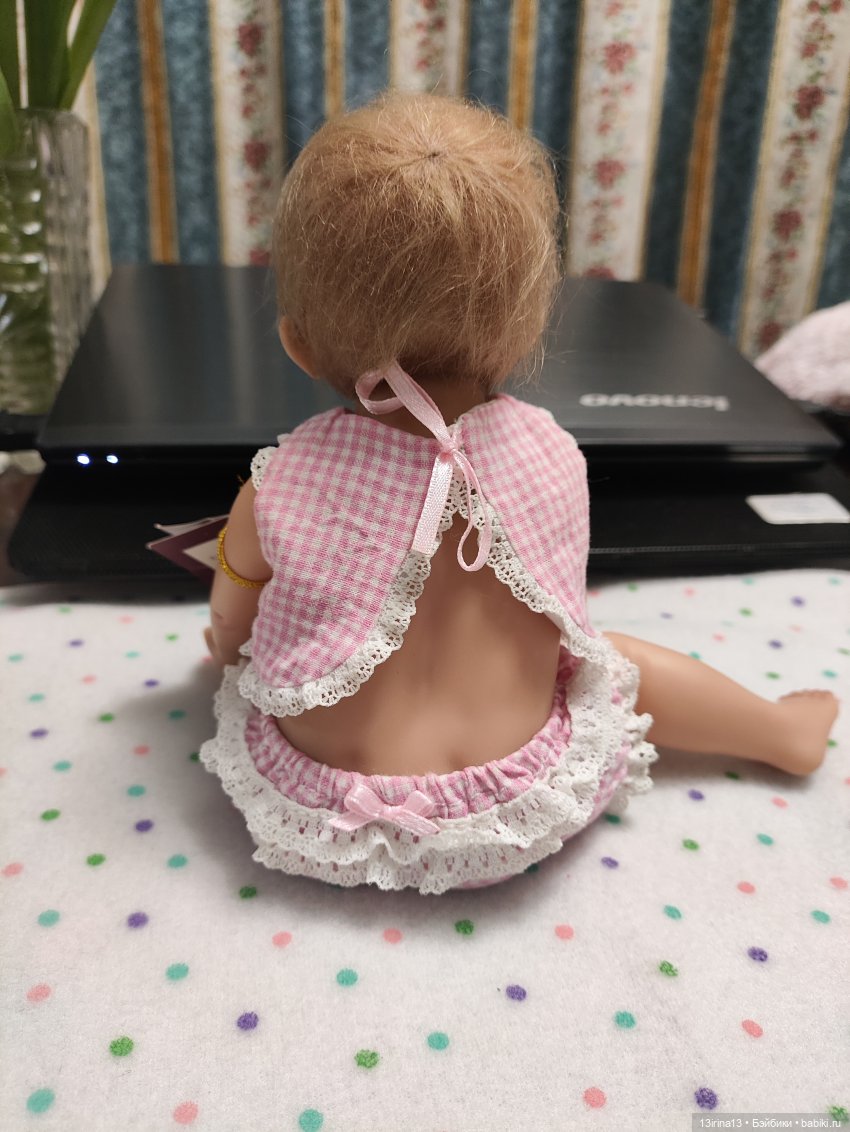 Рост малышки в высоту около 17см, по горизонтали в длину тоже около 17см.