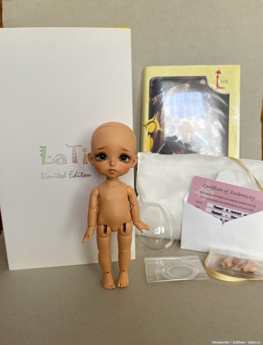 Вместе с куклой (нюд) приедет: коробка, сертификат, матрас, жестовые руки, защитная маска, резинка для перетяжки, буклет от лати.