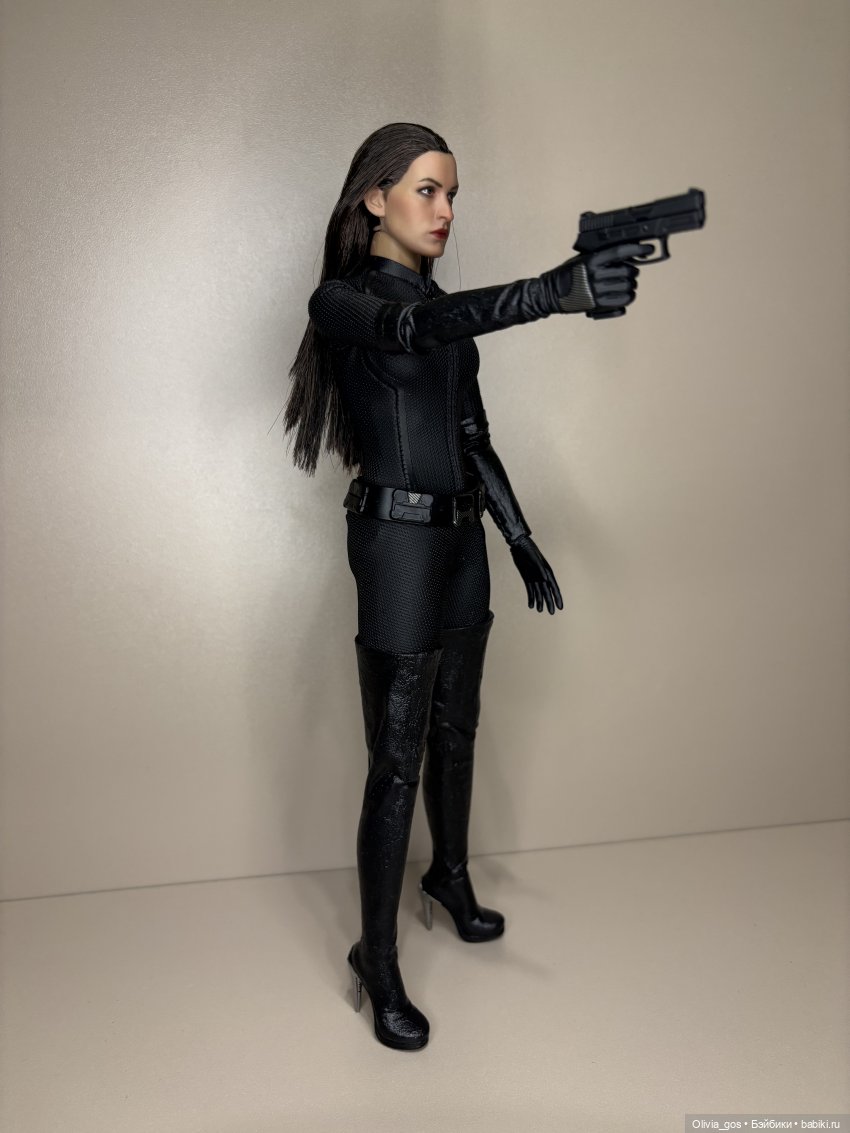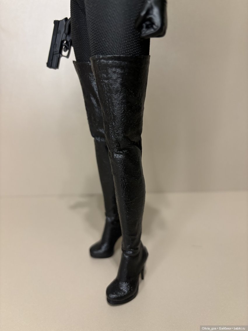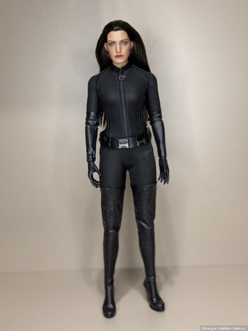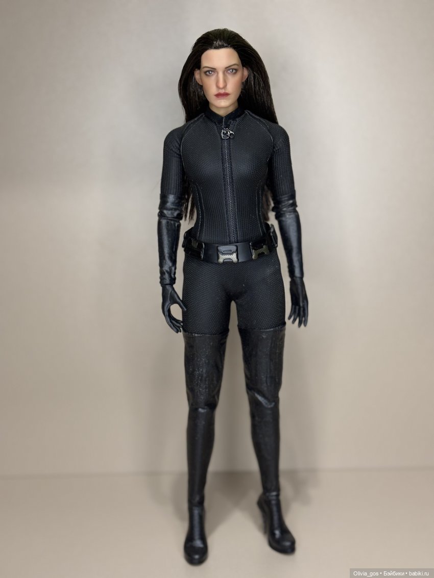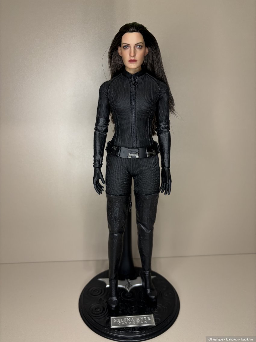 Женщина кошка с неродной, но прекрасной головой. Тело, подставка, очки, пистолет, сменные кисти, коробка — родные. Голова с али, с ней шли очки красного цвета, всё это будет в комплекте. Кто знаком с выпуском женщины кошки Hot toys в 2013 году, наверняка слышали, что кожаные части аутфита- сапоги и верх перчаток- сыпались, сходил верхний слой «кожи». Мою девочку это также не миновало и я покрыла эти части жидкой кожей. На костюме сзади небольшая растянутость, это видно только если наклонить или посадить куклу. Прошивка неожиданно густая, голова красивая и идеально подошла к телу. Много доп фото