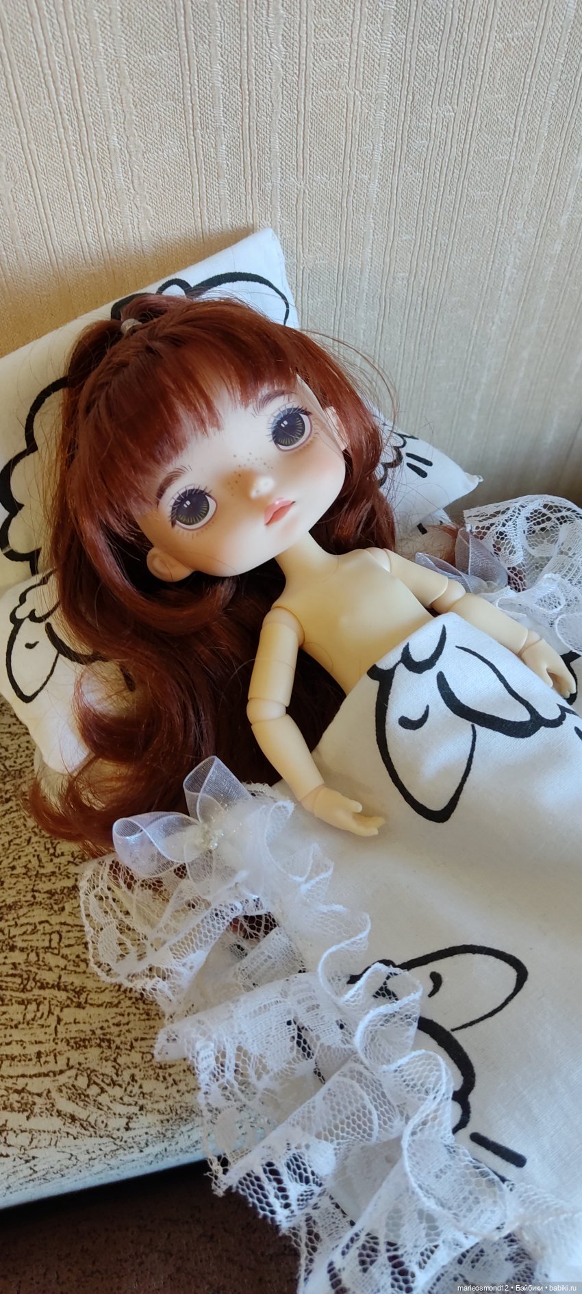 Продам шарнирную куколку Мишку Монст нюд, но с симпатичным креслом и постелькой, которую сделала сама. В подарок положу пару обуви для нее и два платьишка.