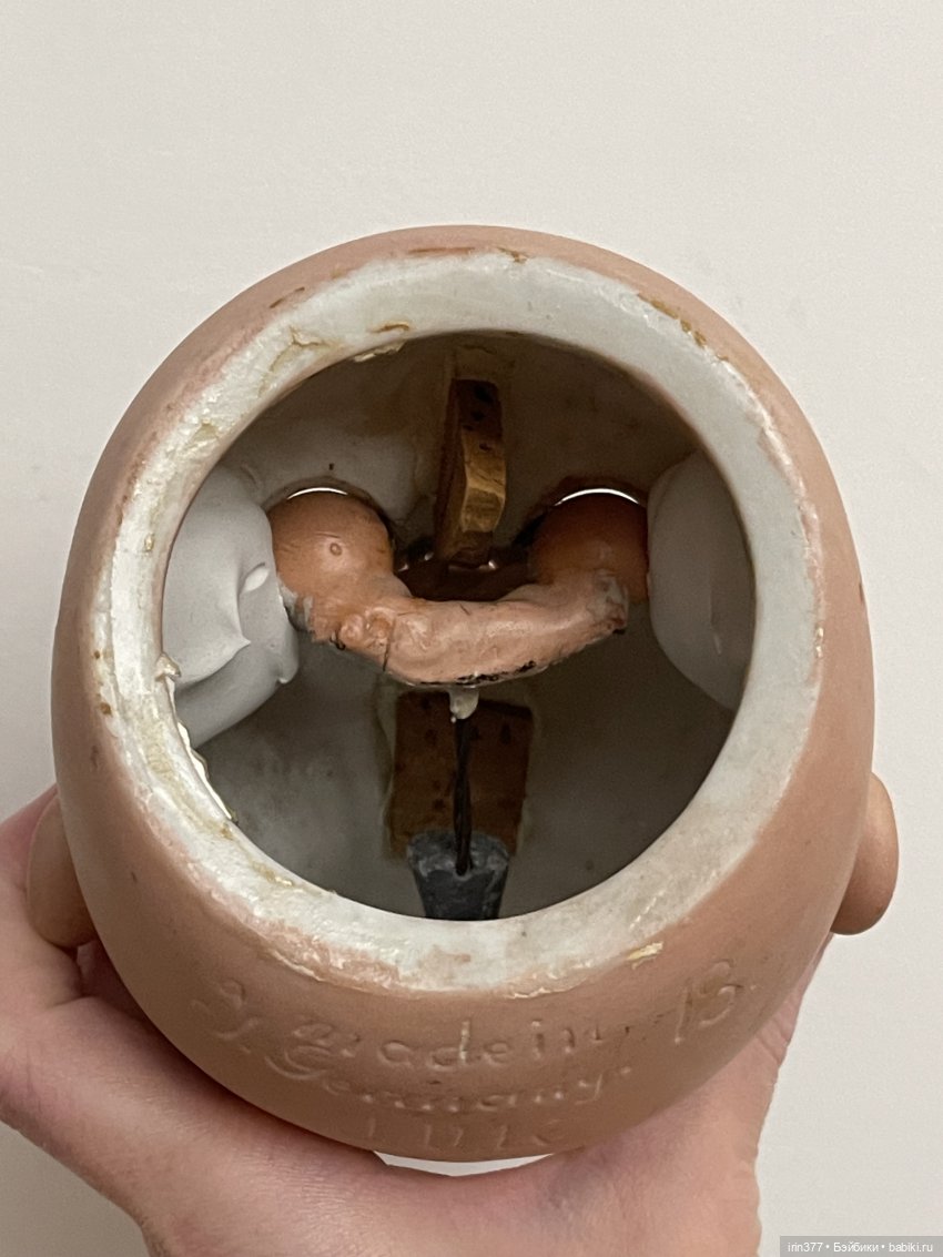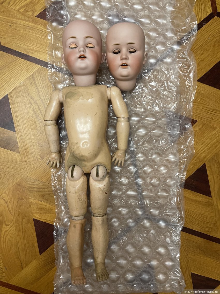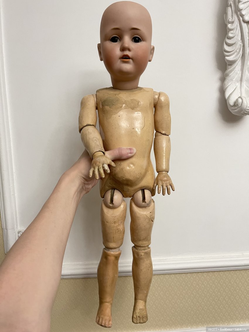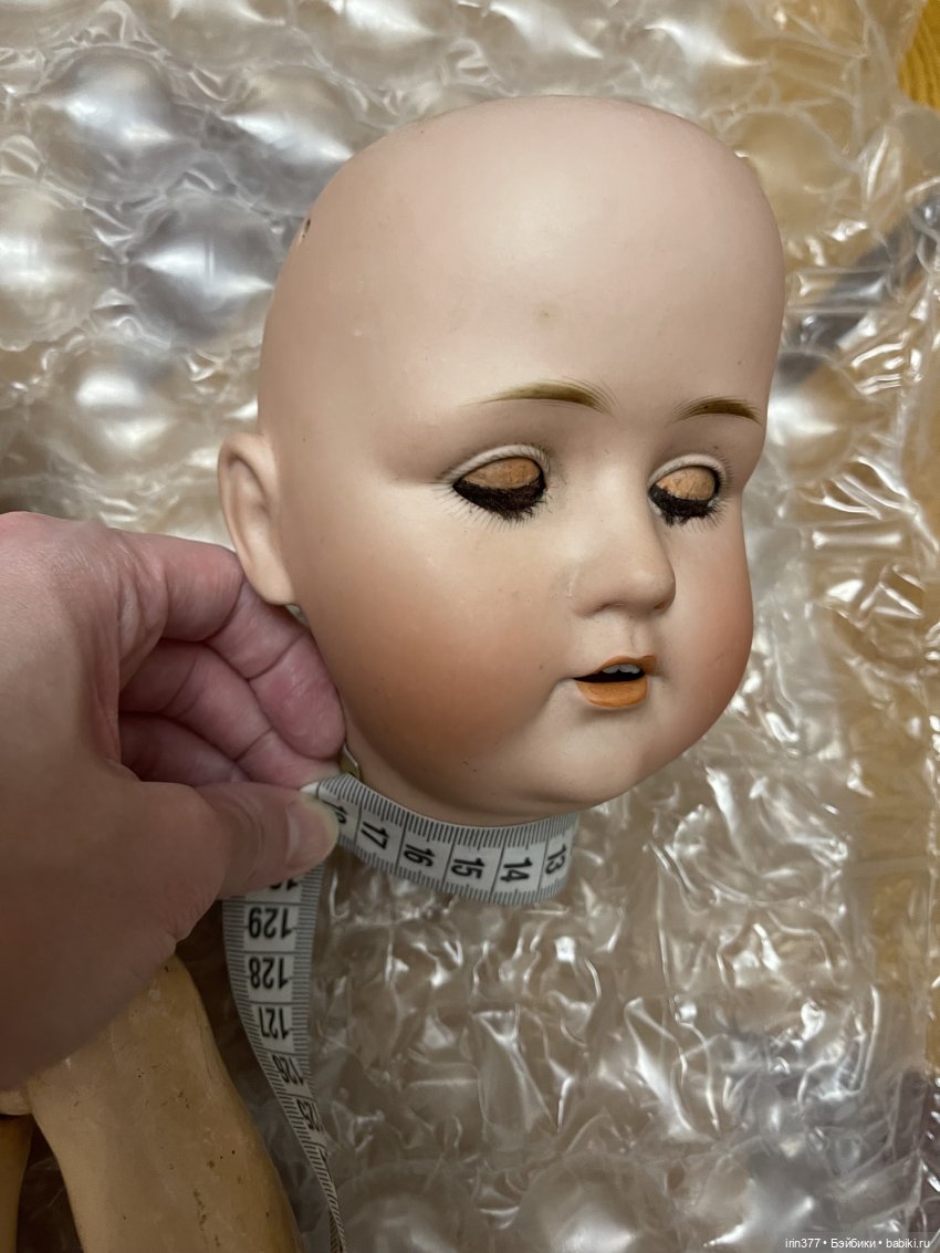 Для примера на фото эта голова на теле Kestner размер 4 (от головы Kestner 214), лунка 4,5 см. Головы подобны по размеру, но 249 несколько крупнее, лицо со щечками, уши крупнее. На мой взгляд тело нужно несколько крупнее, может быть с печатью 4+. 5 размер тела был большой для этой головы.