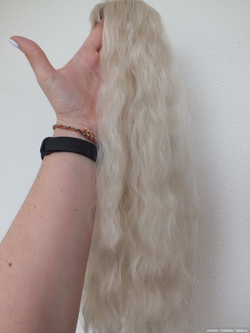 8) парик размера 8-9, фирма Fairyland, красивый очень длинный парик цвета блонд на Feeple60. Длина парика от макушки до кончиков волос около 38-39 см. По всей массе волос мелкая волна. Материал канеколон, шапочка мало тянется.
