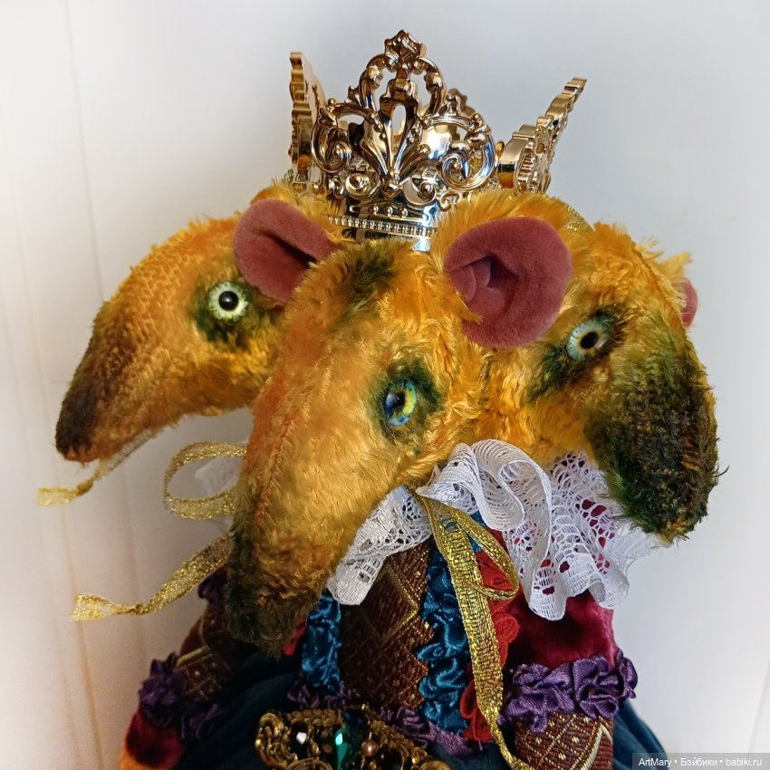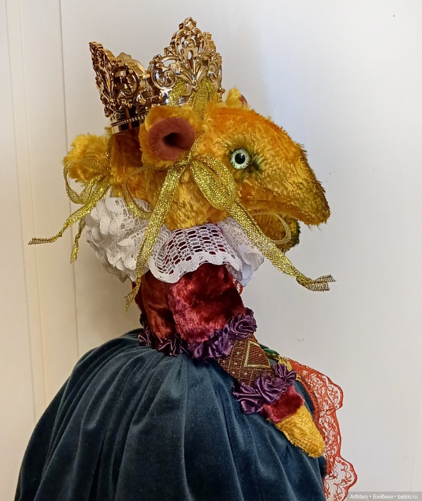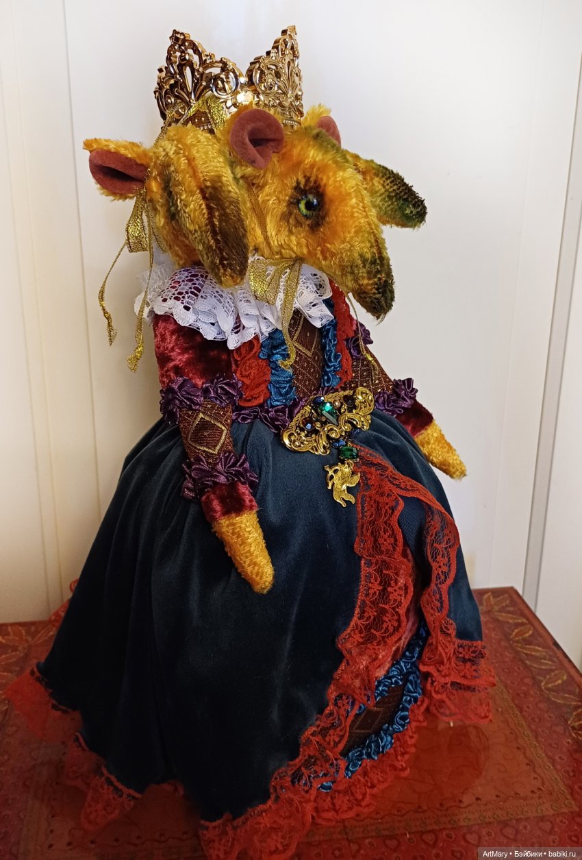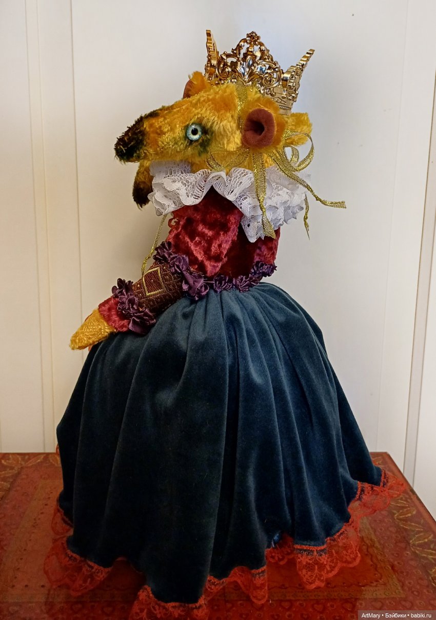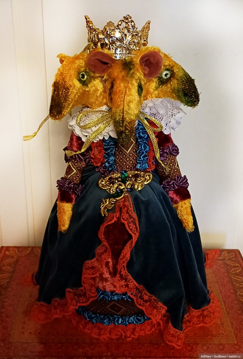 Предлагаю вашему вниманию Мышильду-королеву крыс. Это игольница. Сшита из винтажного плюша. Ростом с короной аж 35 см. Тяжеленькая, устойчивая. Можно использовать как держатель брошей.