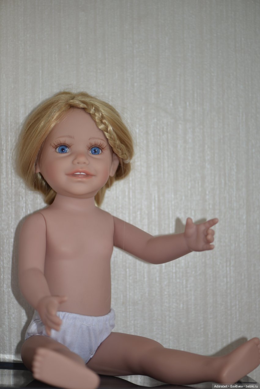 Это кукла формата Готц (по просьбе сравнительное фото сделаю) У данной куколки хороший твердый винил, бархатистый (лучше чем у подружек Джесси и к), нешарнирная, макияж в идеале, румянец на ручках и ножках, красивый маникюр, педикюр. Глаза акрил. Естественный скинтон.