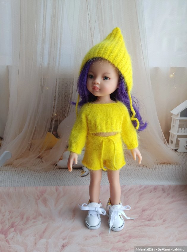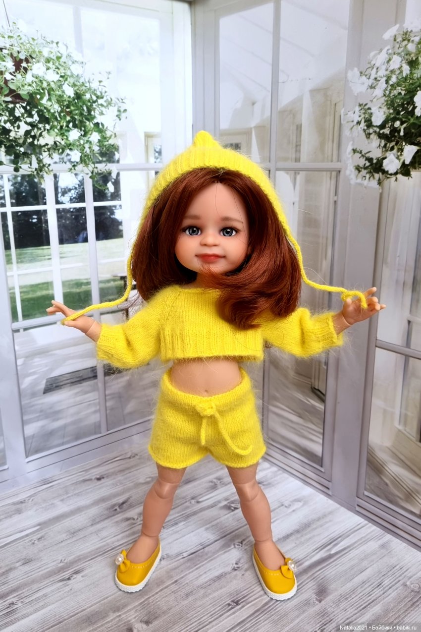 — Вязаный ярко-желтый комплект из кофточки и шортиков(фото на заставке). Мягчайшая, пушистая ангорочка. Кофточка застегивается сзади на пуговку, удобно надевается. Цена 550р