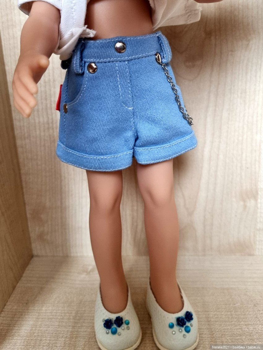 — Джинсовые шортики с функциональными карманами, фурнитурой. Как настоящие. Сзади застегиваются на липучку. Стоимость 650р